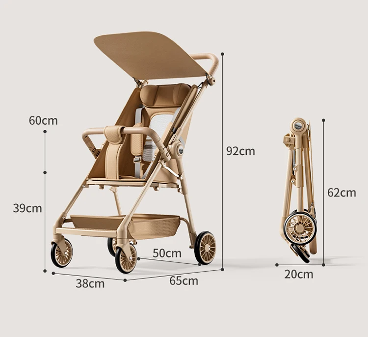 Cochecito plegable On-The-Go, solo plegado instantáneo, respaldo rígido de 3,8 kg, asiento antideslizante de 34 cm de ancho, apto para equipaje de cabina de avión