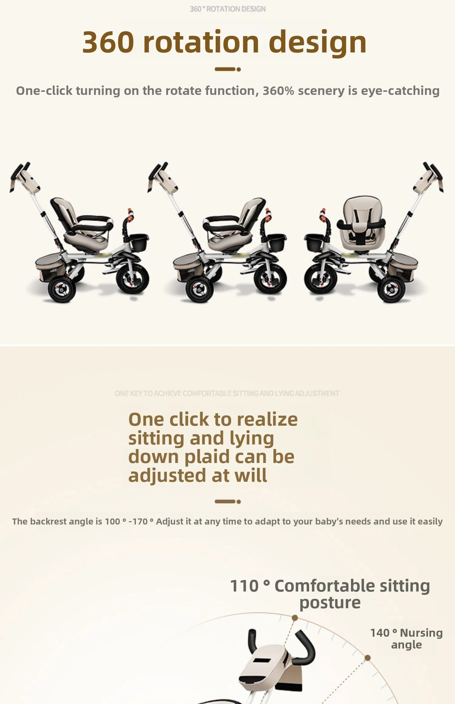 Comprar El cochecito puede sentarse y acostarse, artefacto para bebé, triciclo para niños, bicicleta de 1-4-7 años