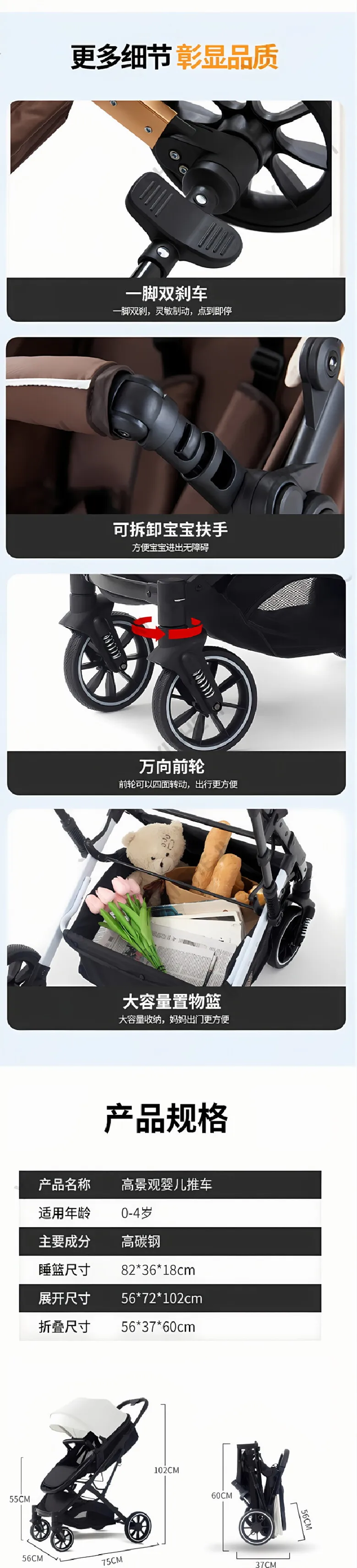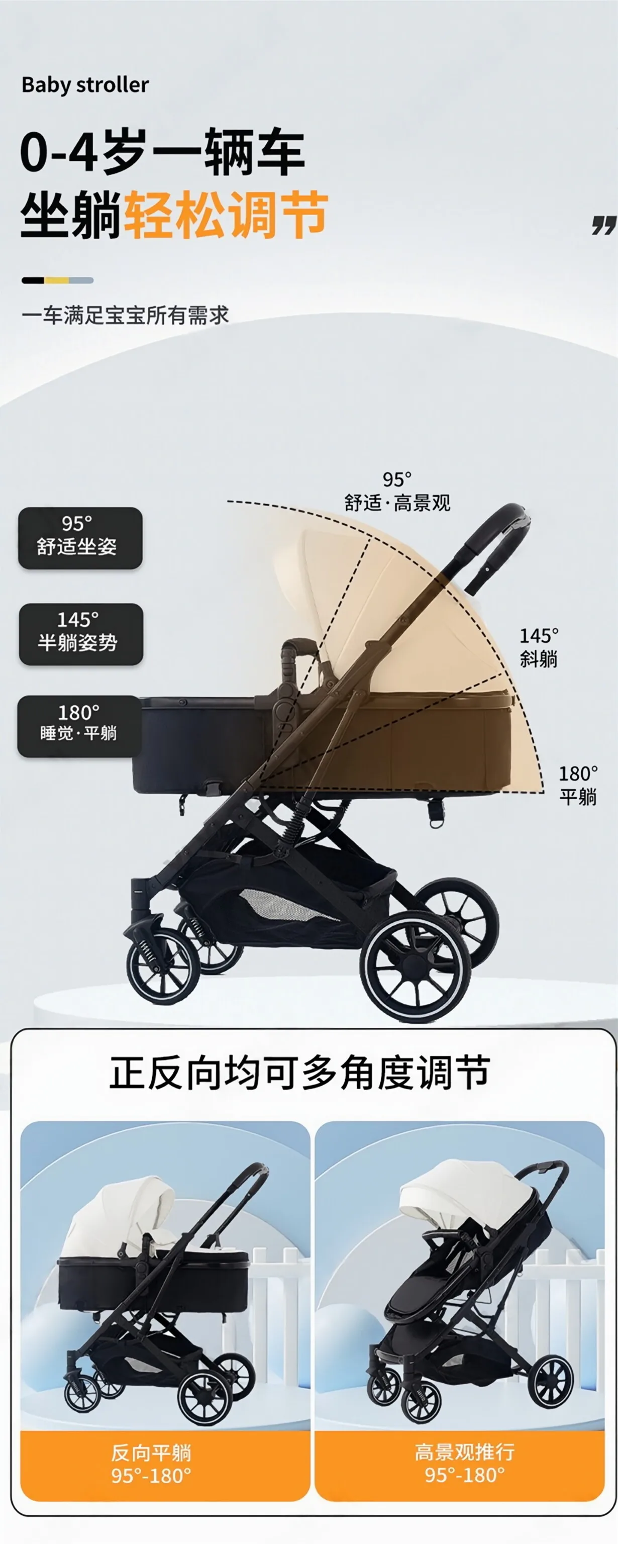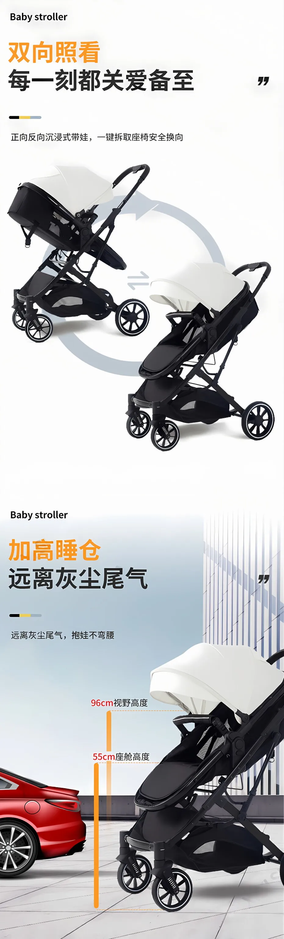 El cochecito puede sentarse y tumbarse, carrito bidireccional para niños recién nacidos con alto paisaje plegable y absorbente de golpes