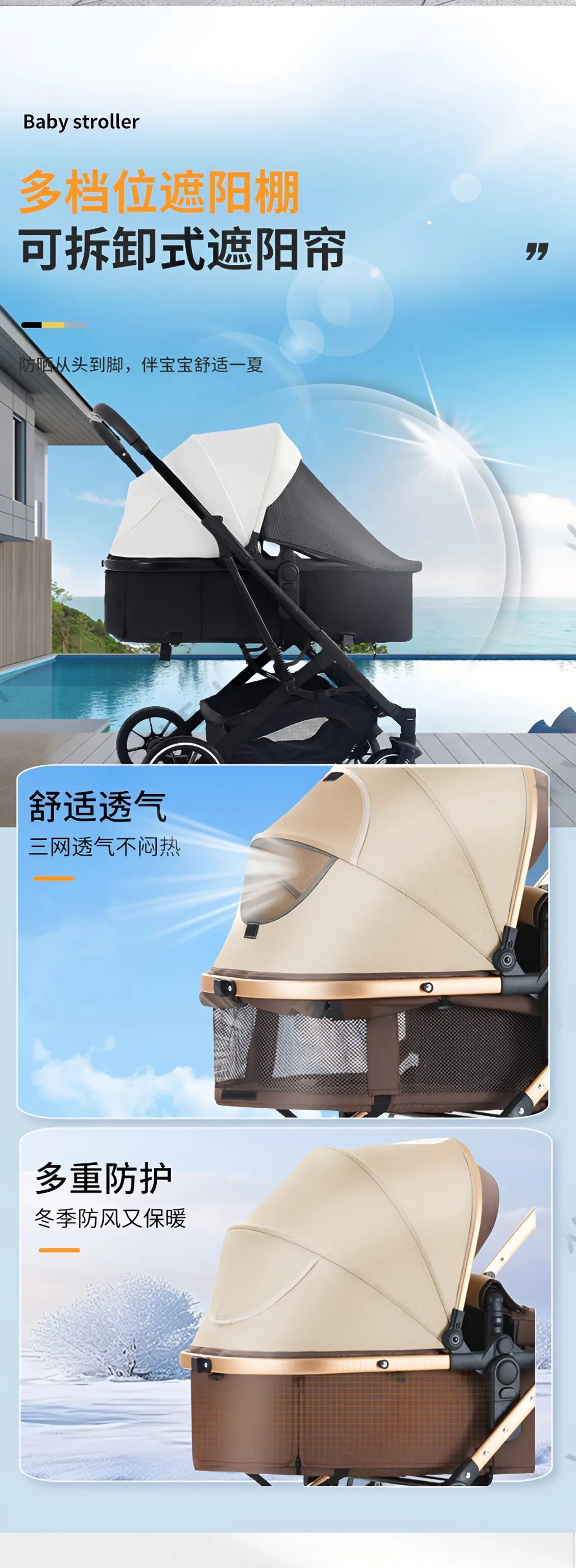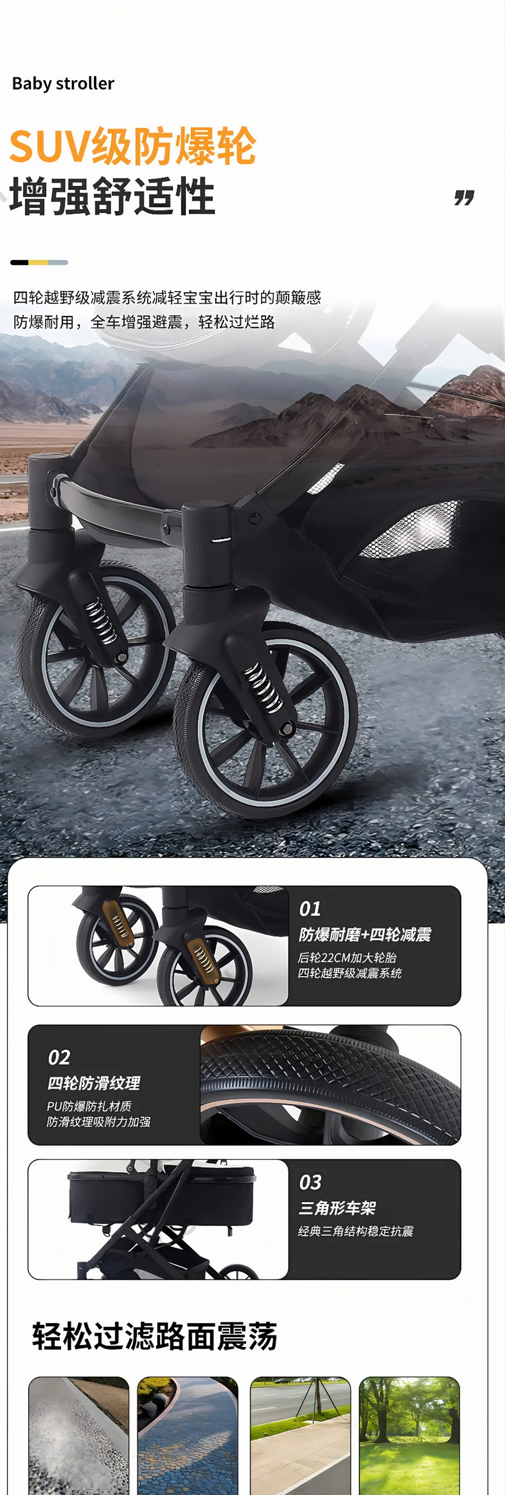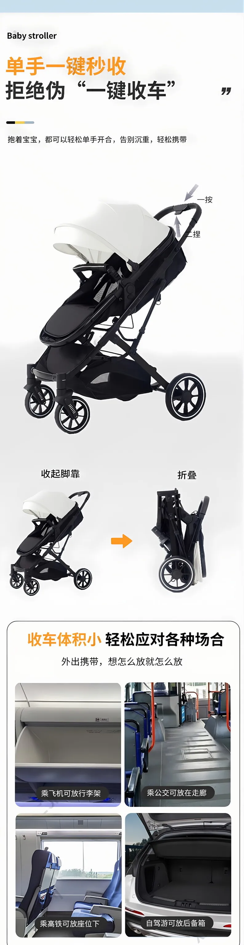 El cochecito puede sentarse y tumbarse, carrito bidireccional para niños recién nacidos con alto paisaje plegable y absorbente de golpes