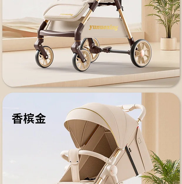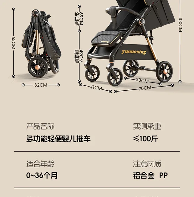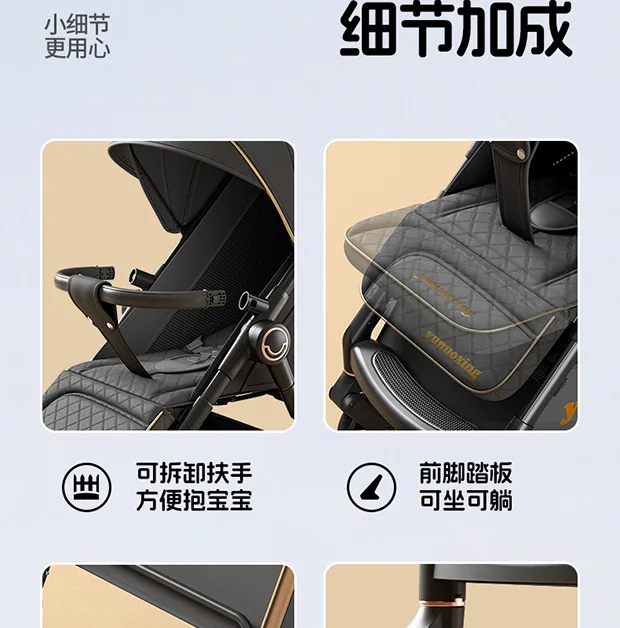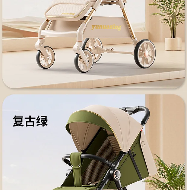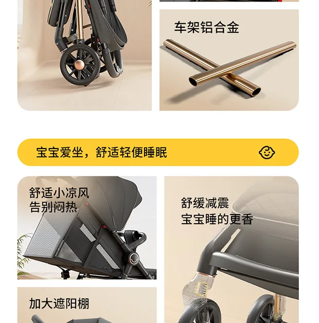 Cochecito se puede sentarse y tumbarse, cochecito de bebé plegable ligero, portátil, doble