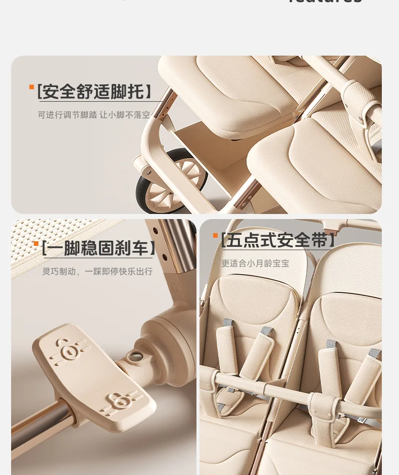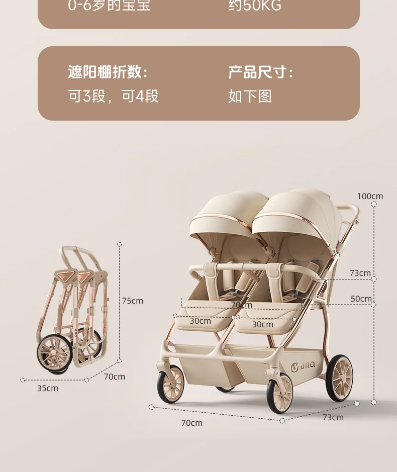 El cochecito se puede sentarse y tumbarse y plegar ligeramente para carritos de bebé recién nacidos de 0 a 3 años.
