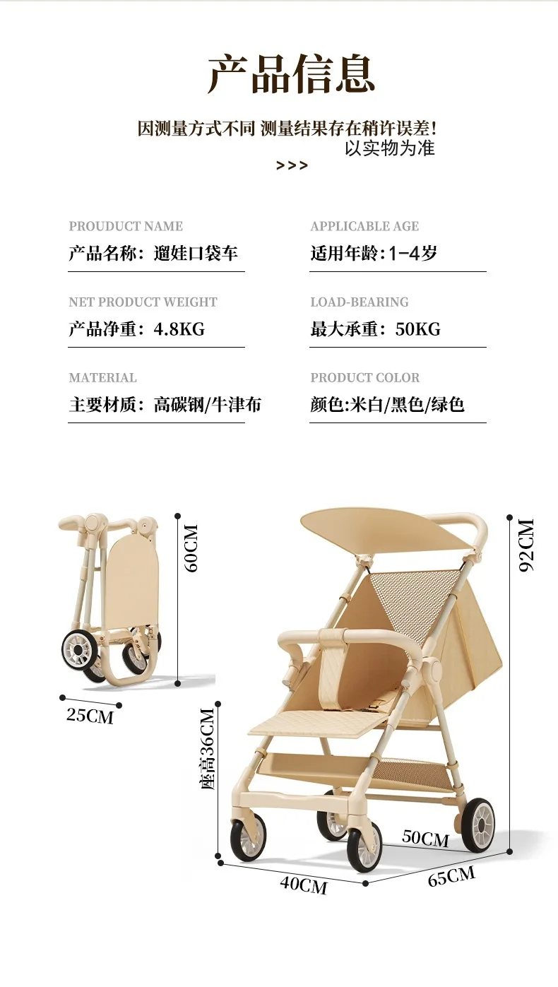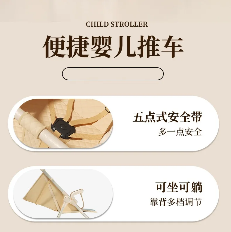 Cochecito con sombrilla de viaje ultraligero con sistema de una sola pliegue, arnés de seguridad de 5 puntos y asiento reclinable para uso en avión