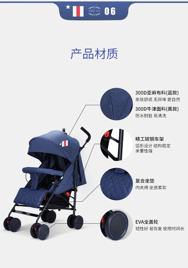 Cochecito de verano, cochecito ligero, portátil, plegable, puede sentarse y acostarse, carrito europeo Simple, paraguas para bebé Bb - imagen 5