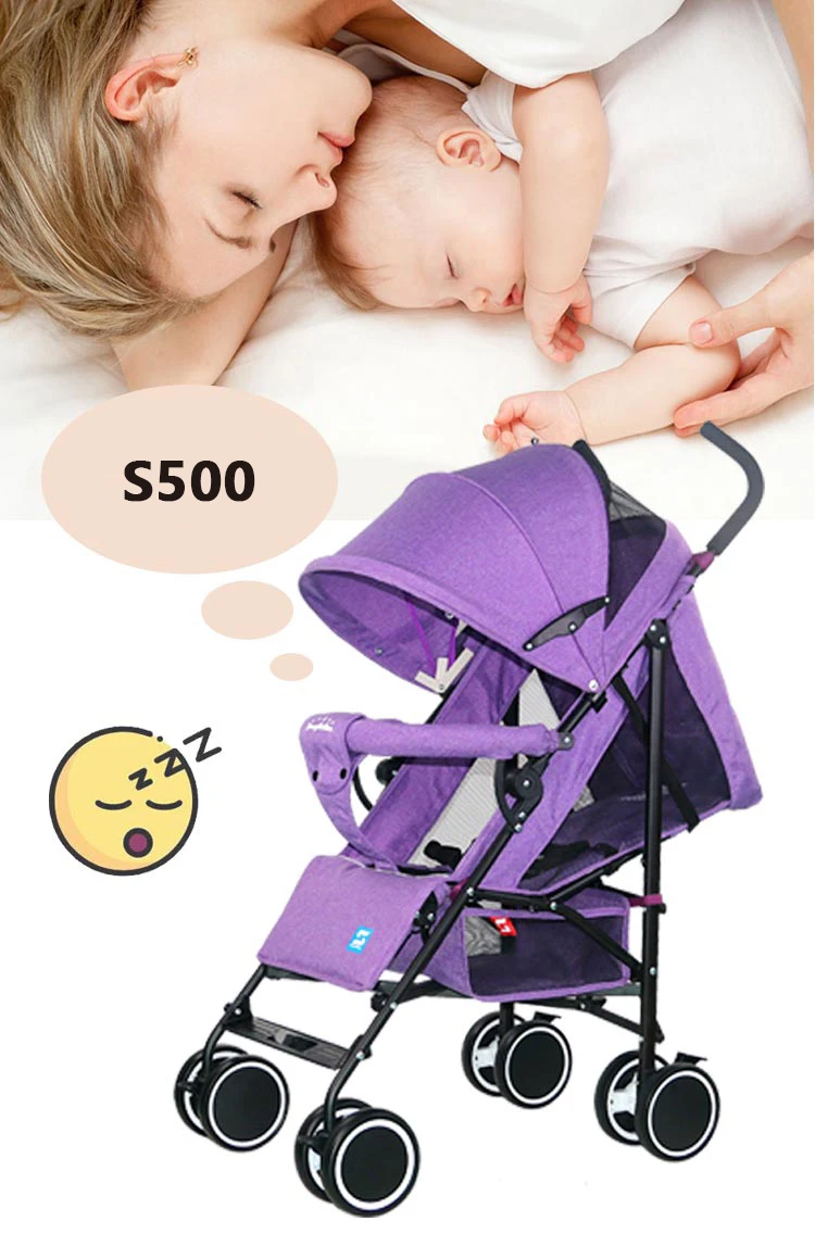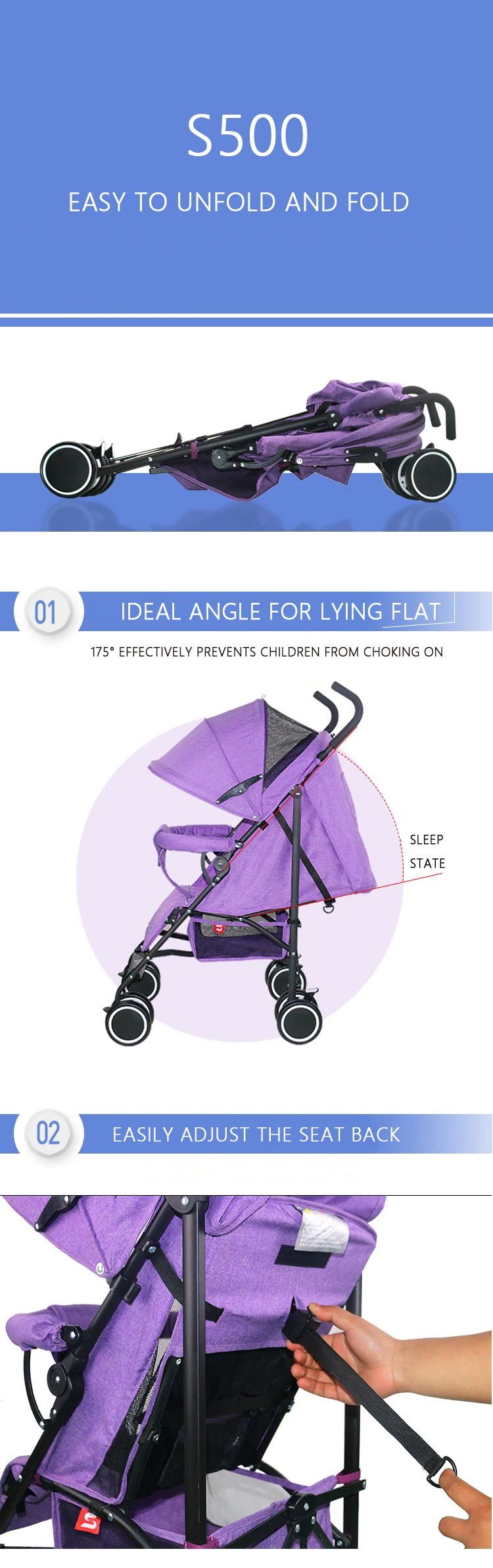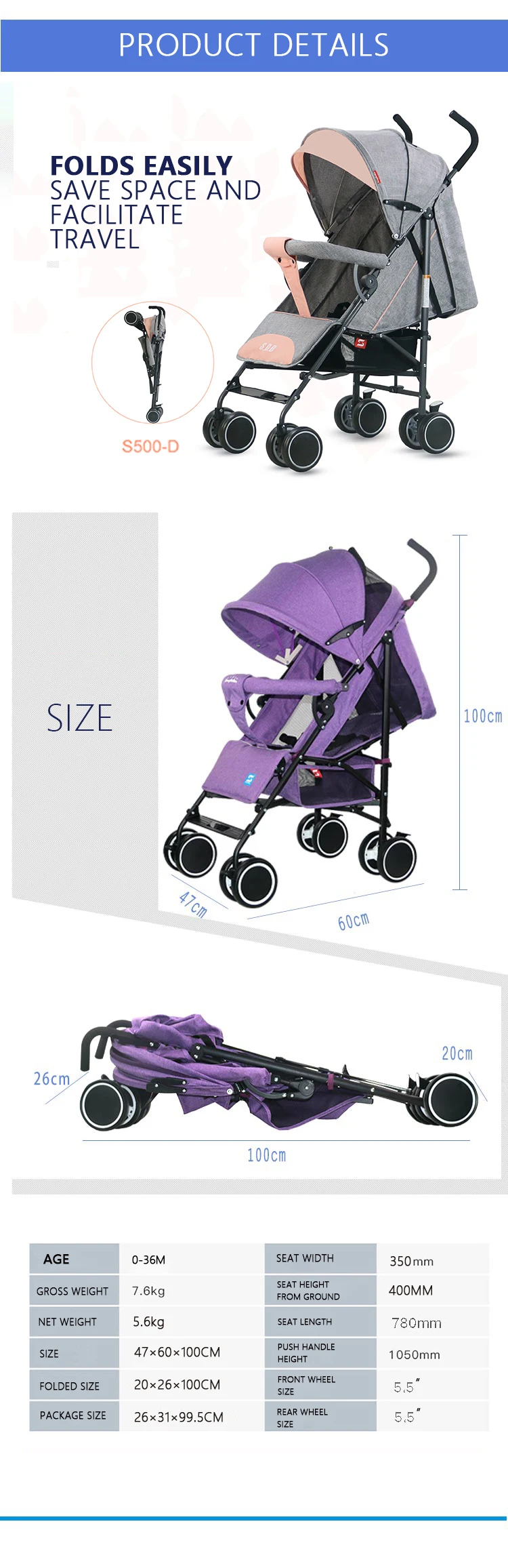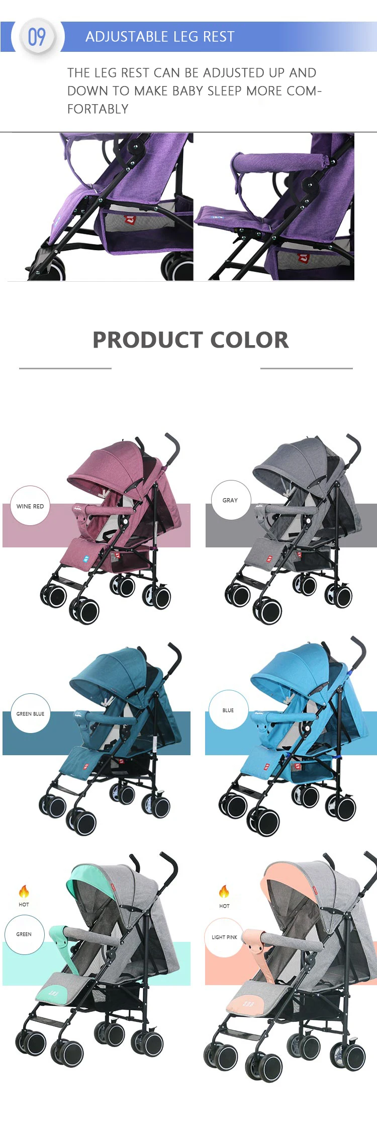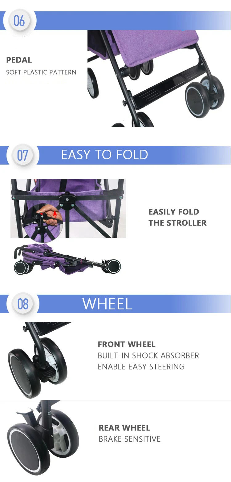 Cochecito tipo sombrilla liviano, acero al carbono fino, tela de lino y la pared frontal no se pueden quitar. Puede sentarse o acostarse, el cojín inferior está completamente acolchado, dosel completo, cinturón de seguridad estilo 2 puntos.