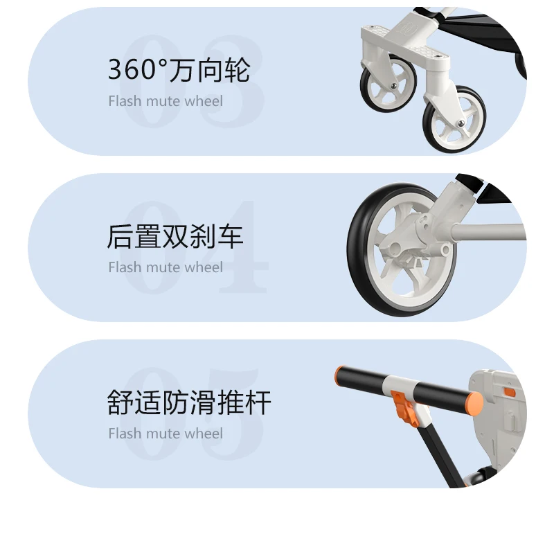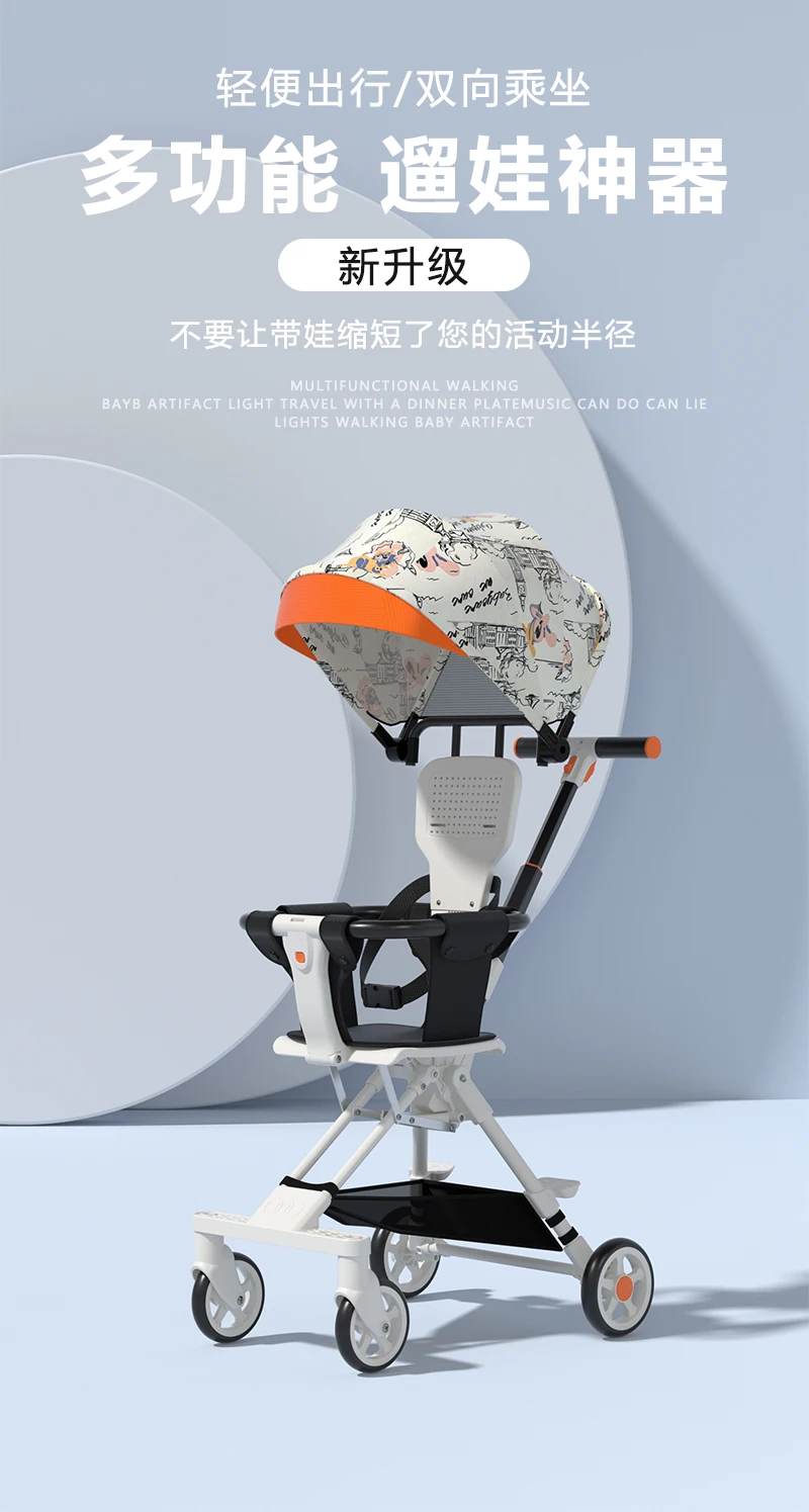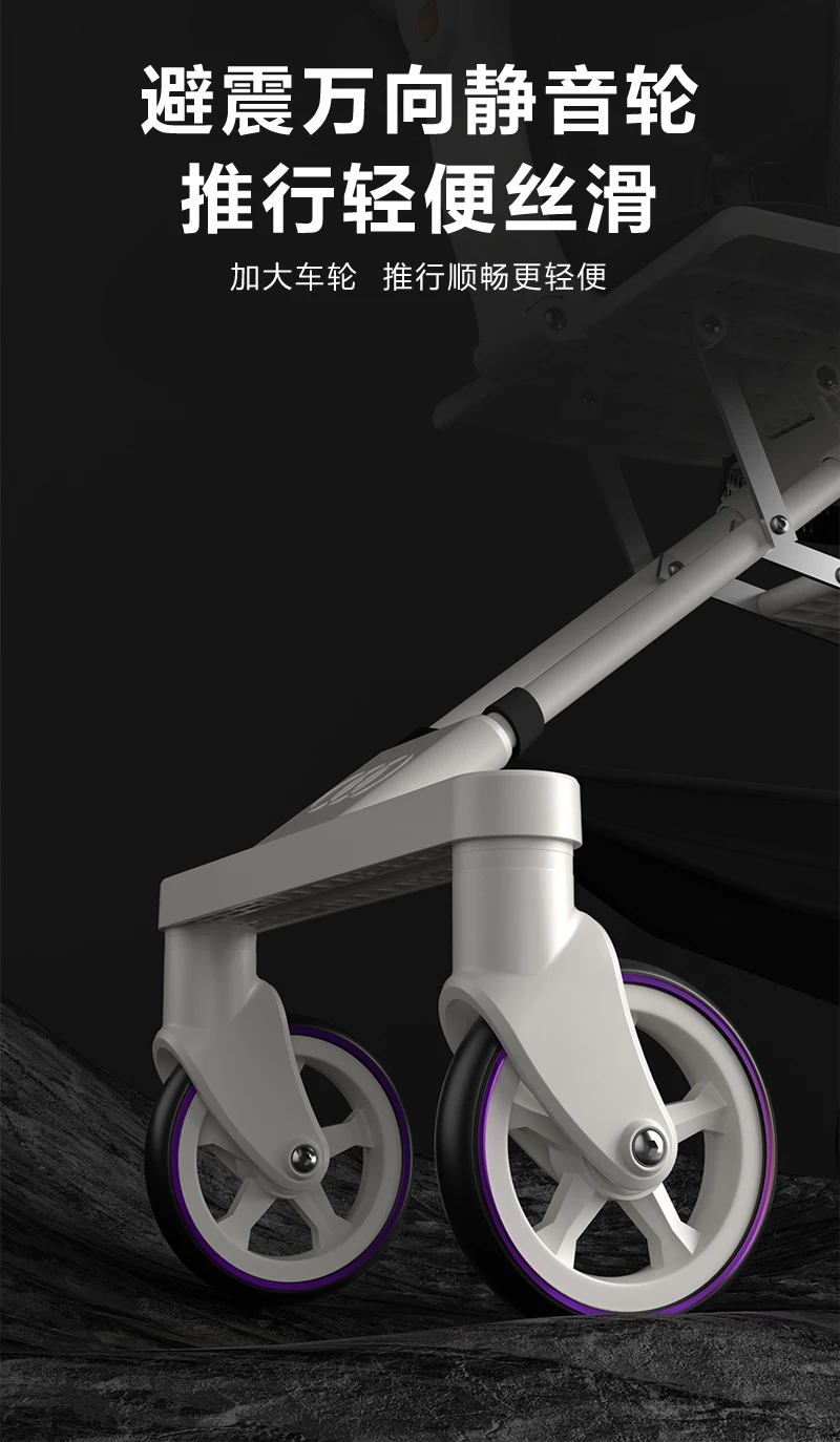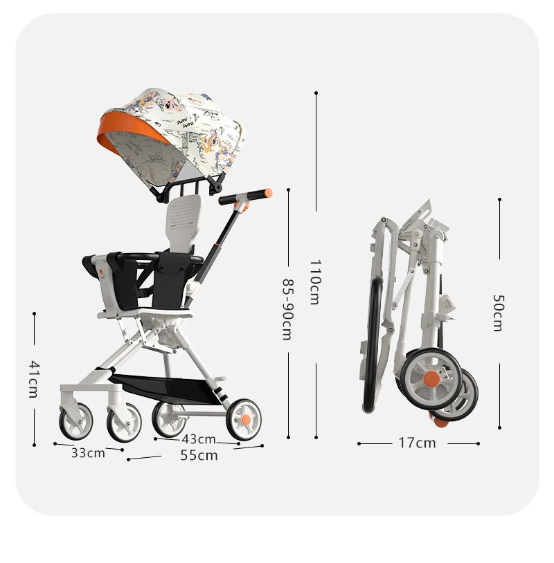 Cochecito de viaje reversible de alta visión, asiento transpirable para cochecito ligero y apto para avión + dosel de 8 niveles 360 ° Ruedas Frenos duales