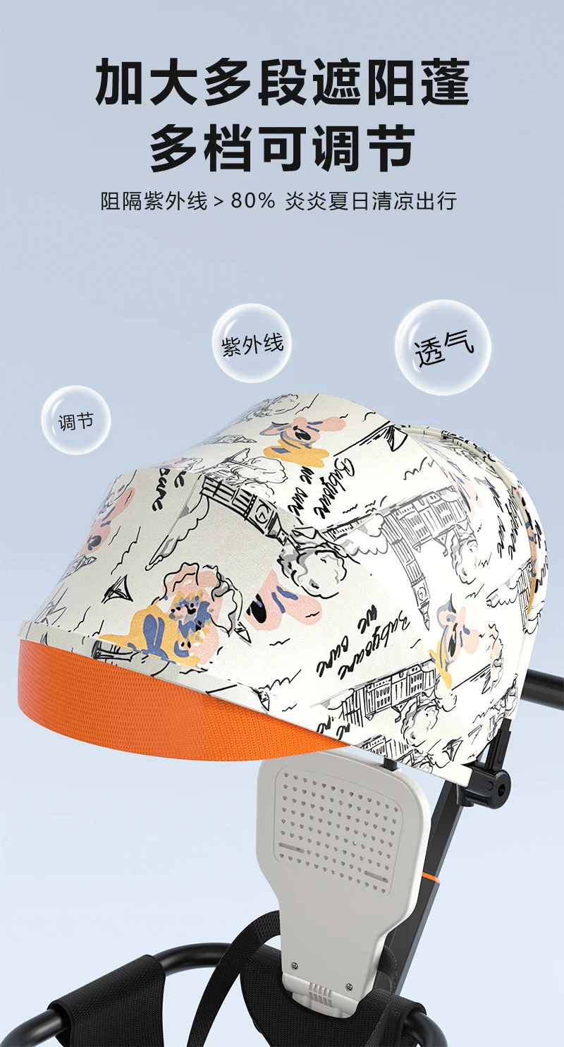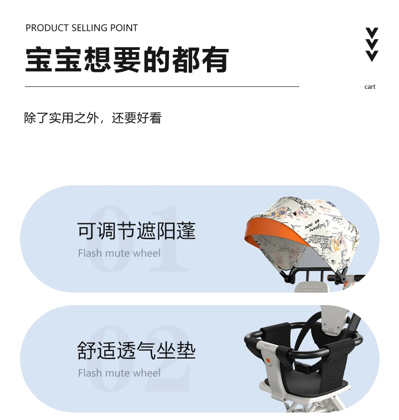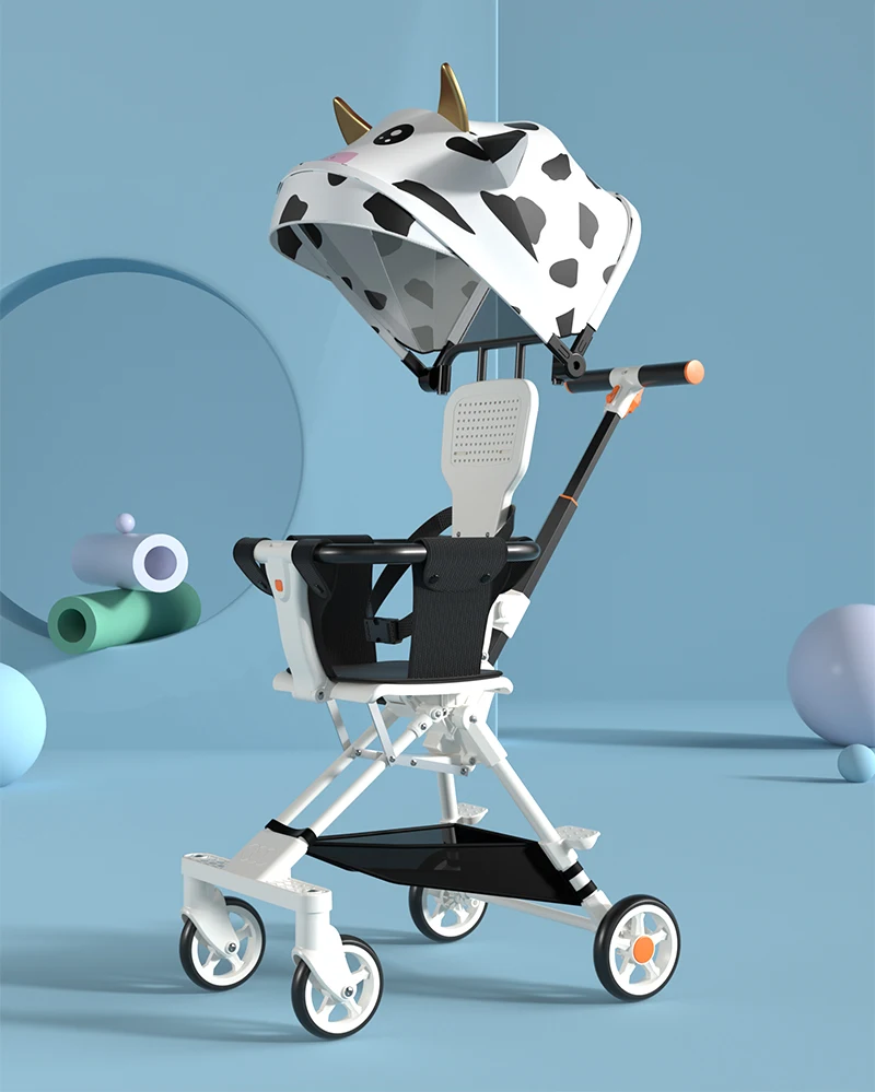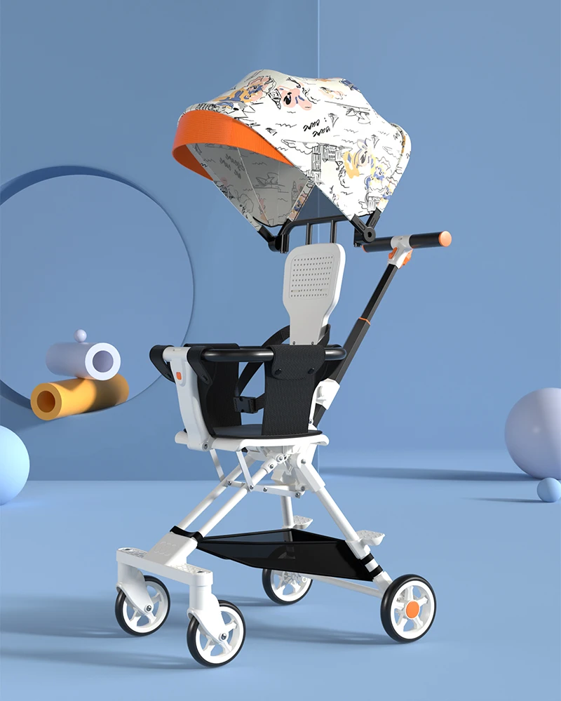 Cochecito de viaje reversible de alta visión, asiento transpirable para cochecito ligero y apto para avión + dosel de 8 niveles 360 ° Ruedas Frenos duales