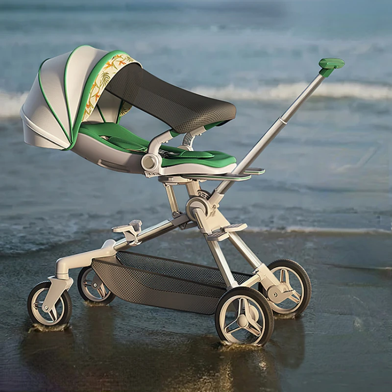Cochecitos de bebé de aleación de aluminio, cabina de cáscara de huevo, puede sentarse y acostarse, cochecito ligero y plegable, cochecito de bebé de paisaje alto