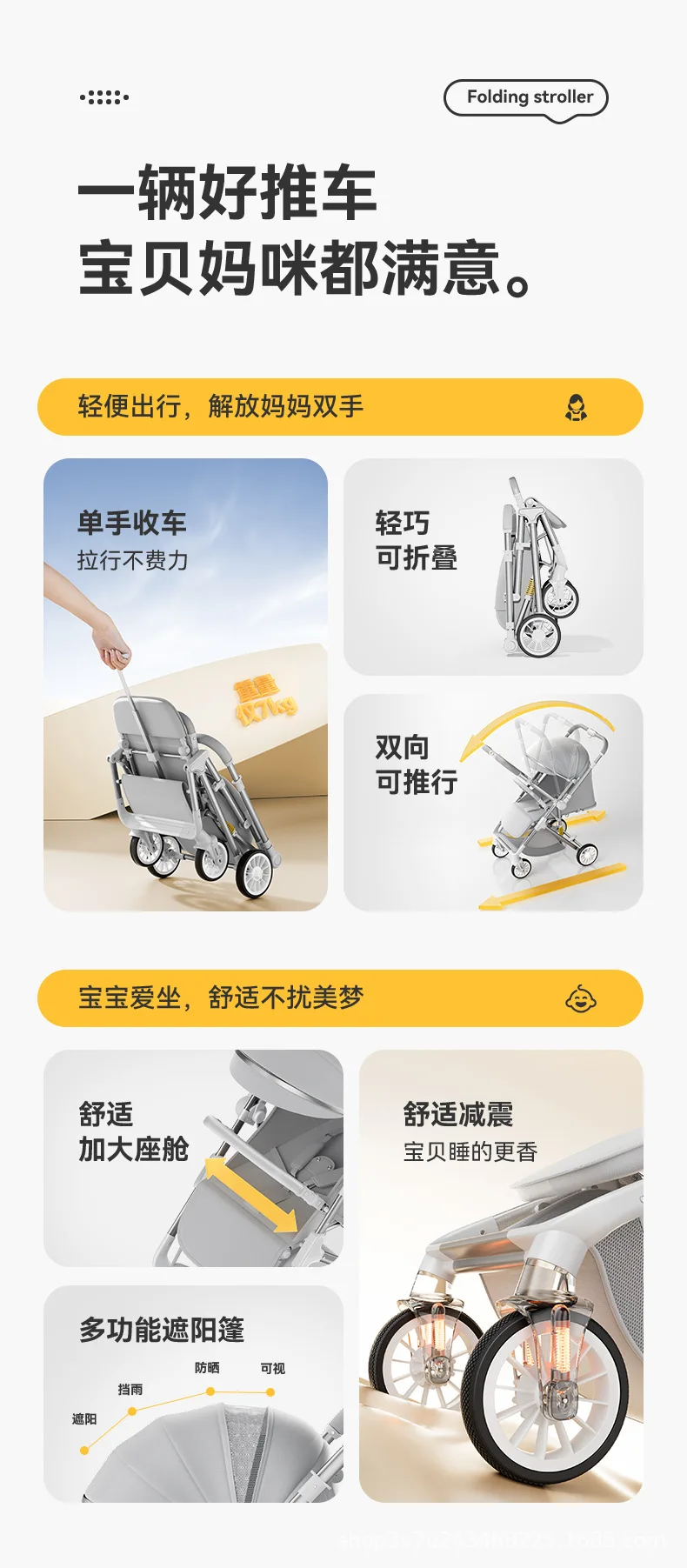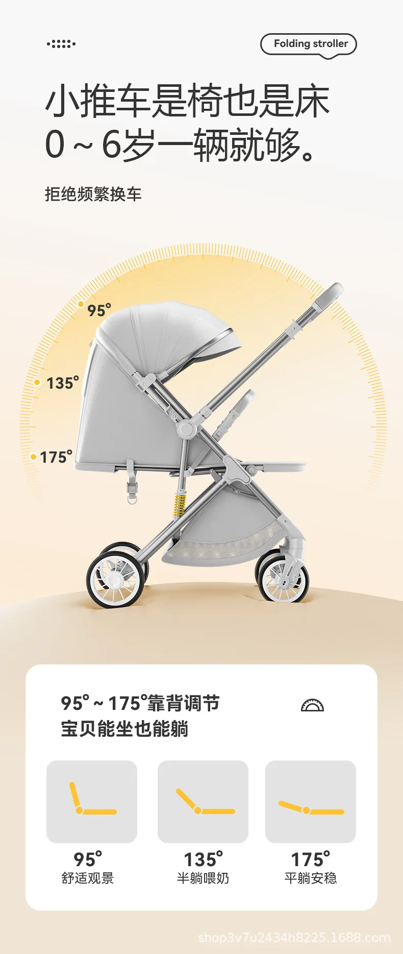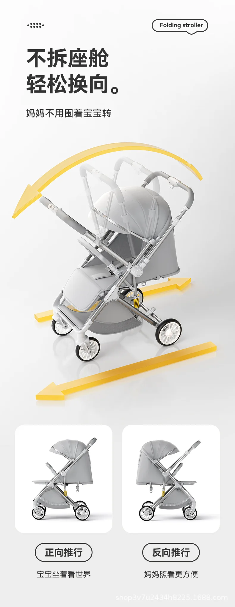 Cochecitos de bebé de alto paisaje, ligeros, plegables, sentado, reclinados, cochecitos bidireccionales para niños, carritos de equipo para caminar