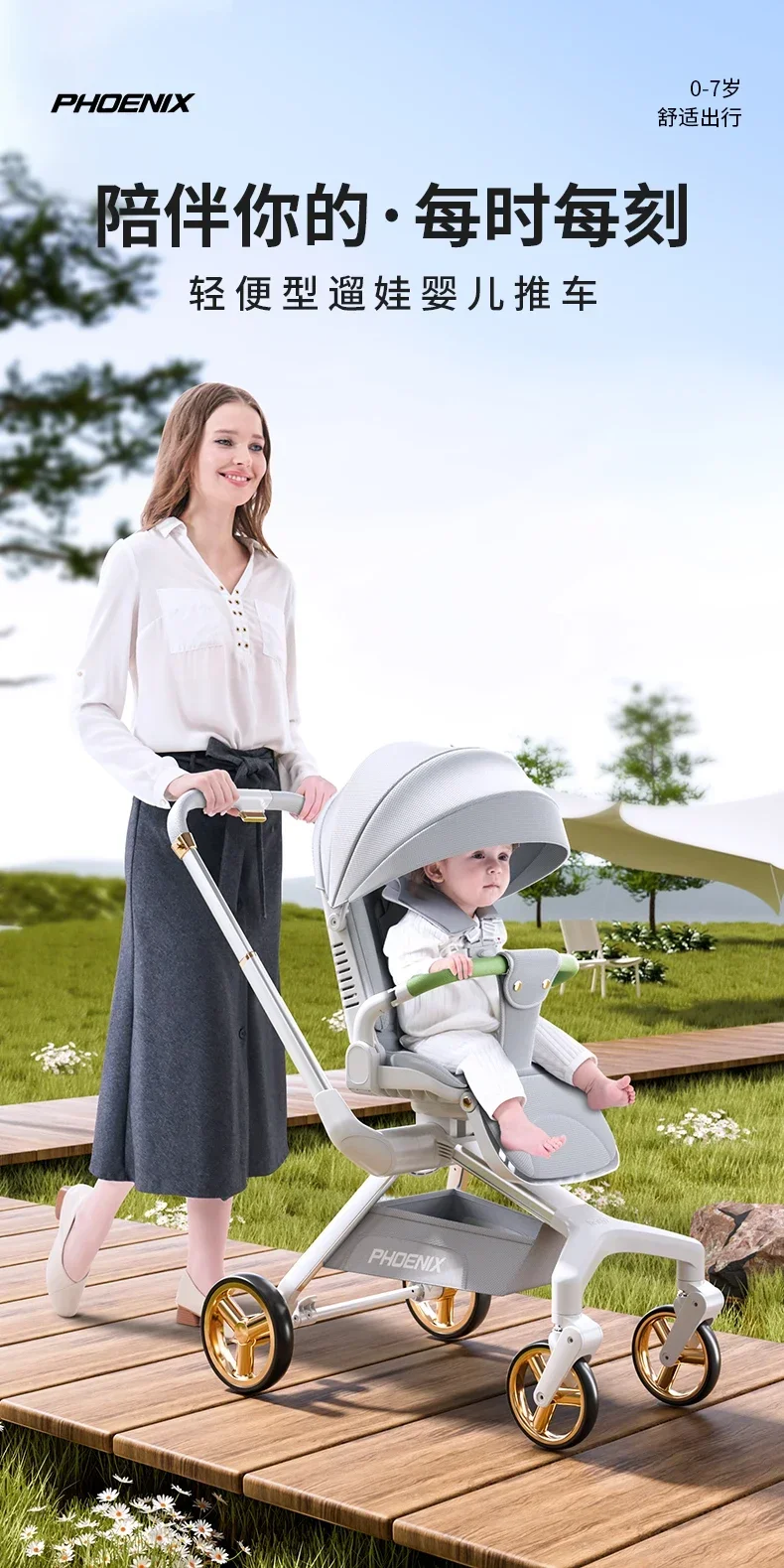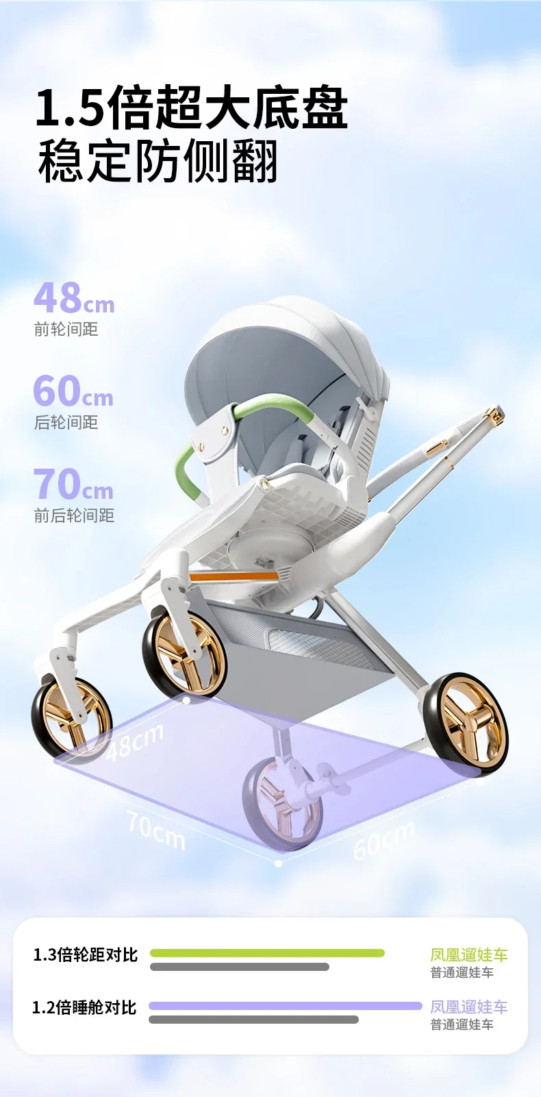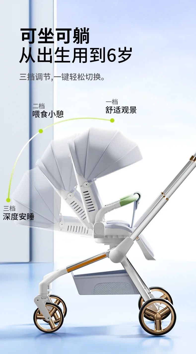 Los cochecitos de bebé bidireccionales plegables portátiles de alto paisaje pueden sentarse y acostarse - imagen 4