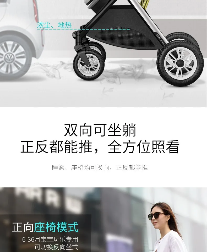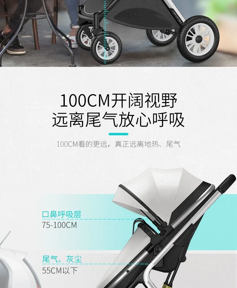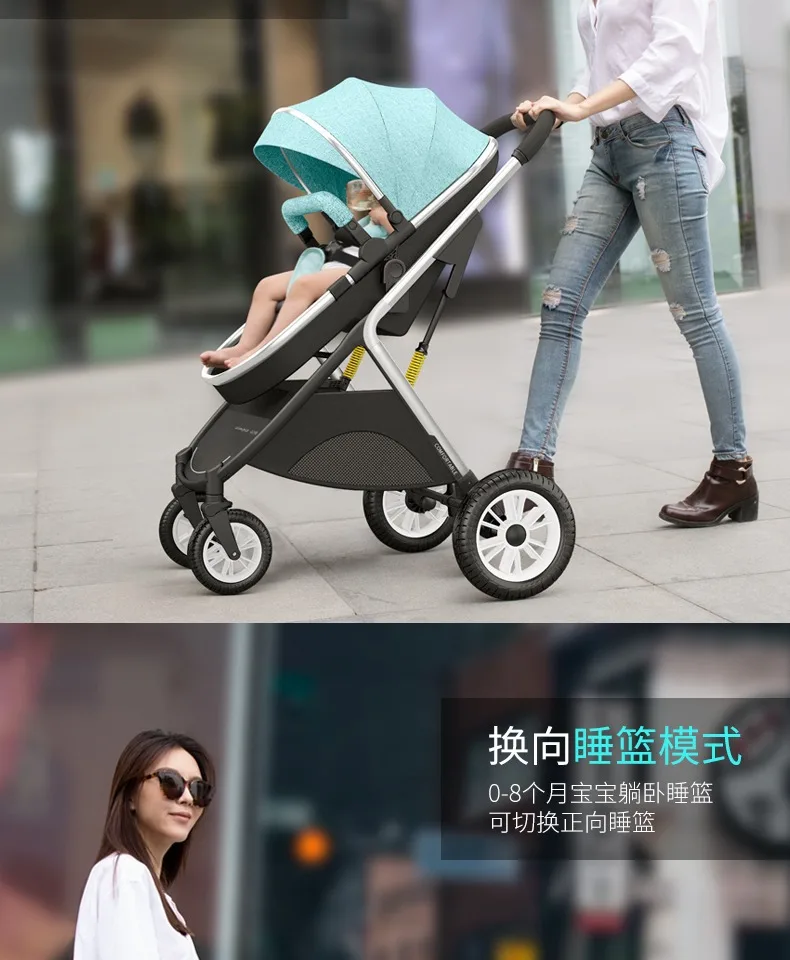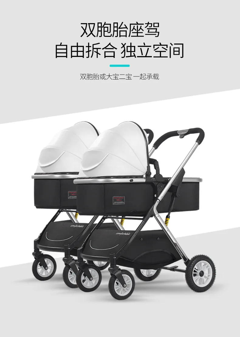 Cochecitos de bebé gemelos que se pueden sentarse, reclinados, ligeros, plegables, de alto paisaje, amortiguadores, cochecitos de bebé recién nacidos bidireccionales