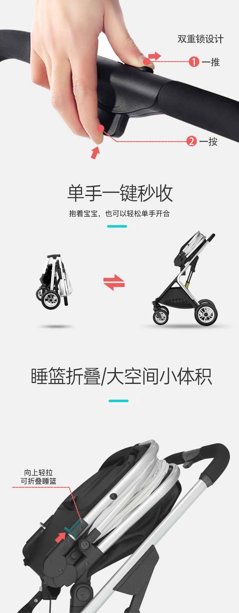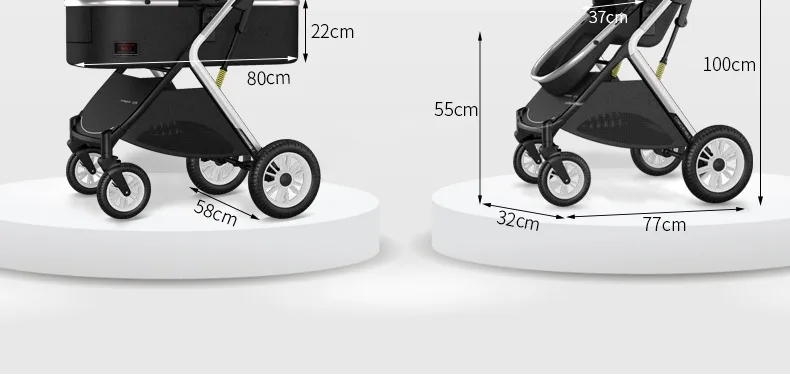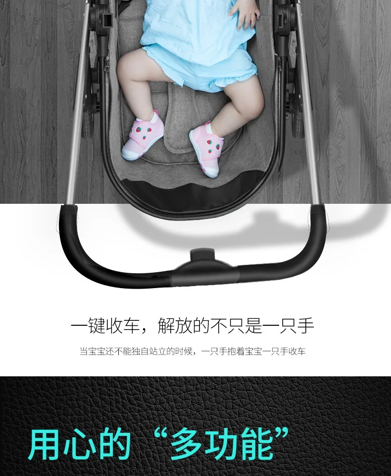Cochecito ligero de dos vías para bebé, carrito de viaje portátil de un botón, plegable, de visión alta