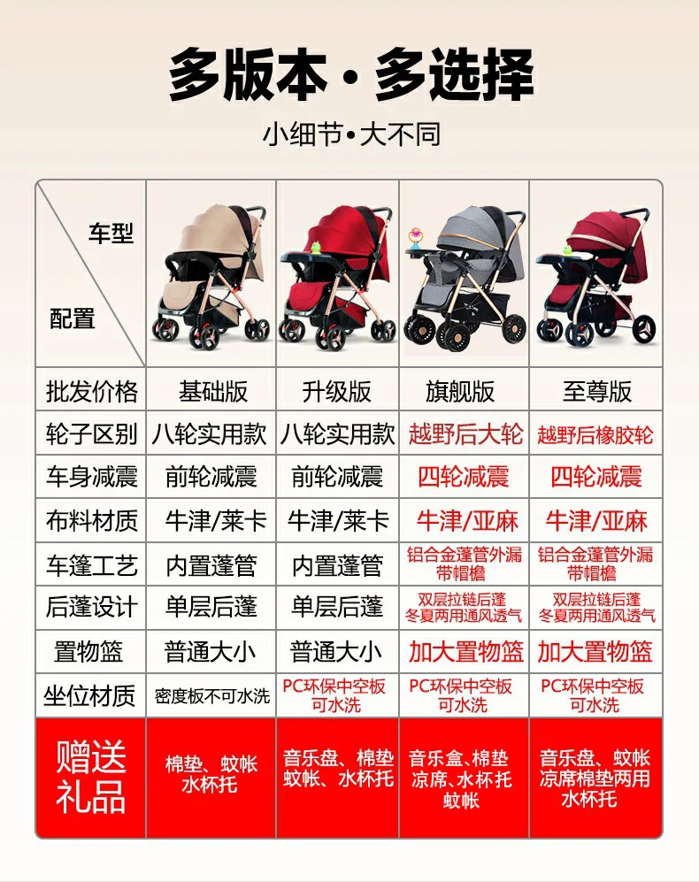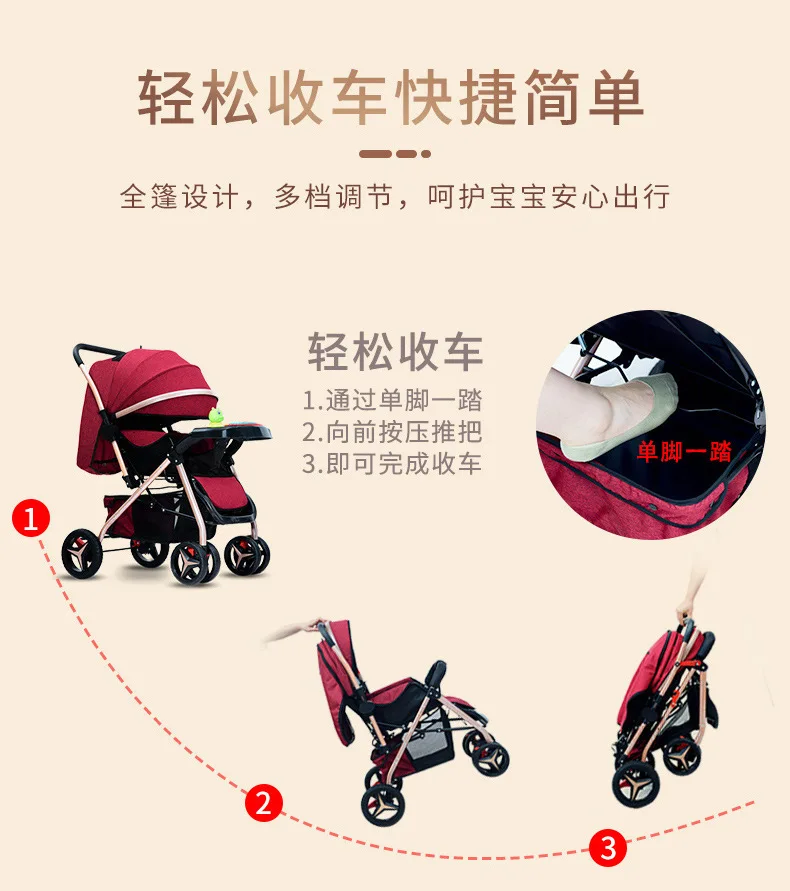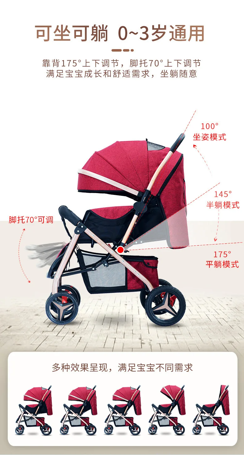 Cochecitos de bebé ligeros que cargan los cochecitos de bebé se pueden sentarse tumbarse, plegable, seguro bidireccional