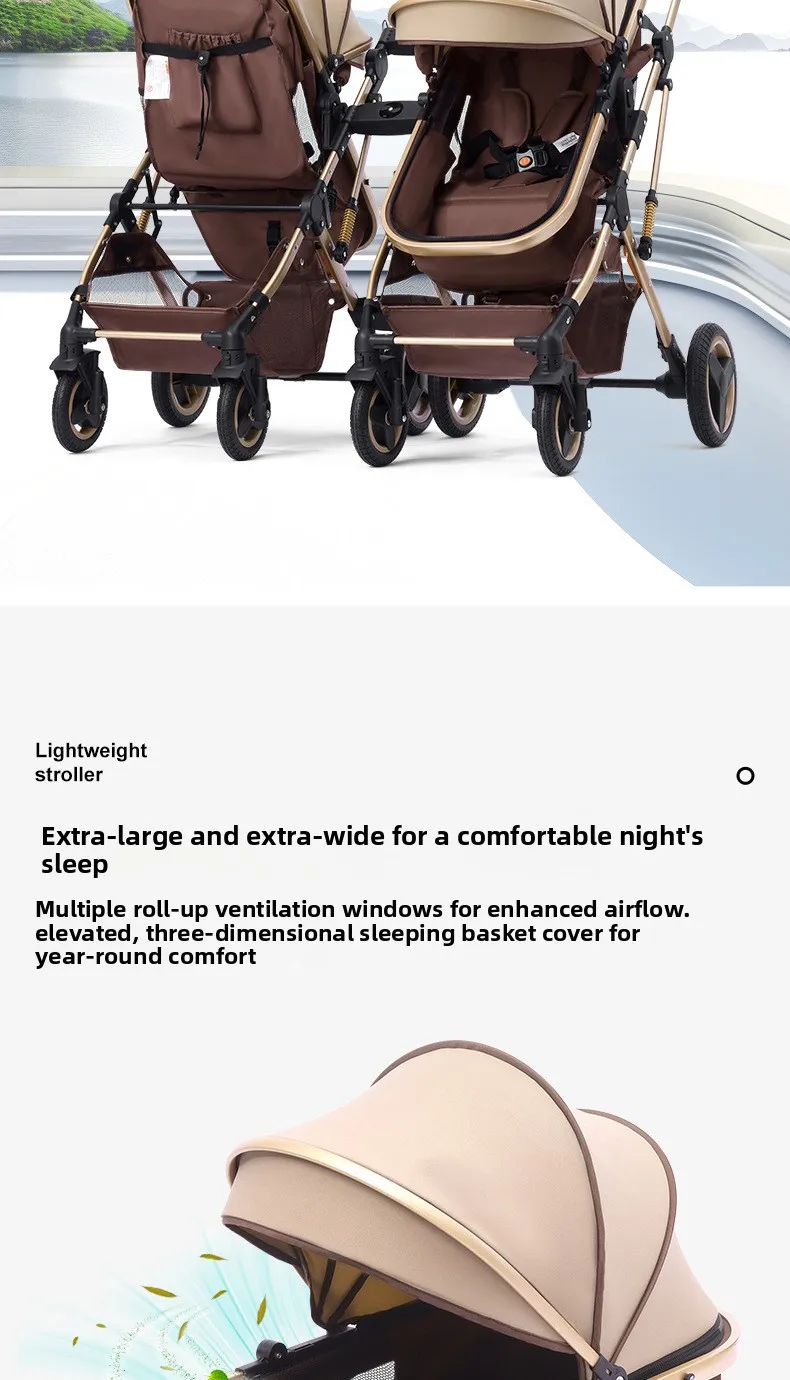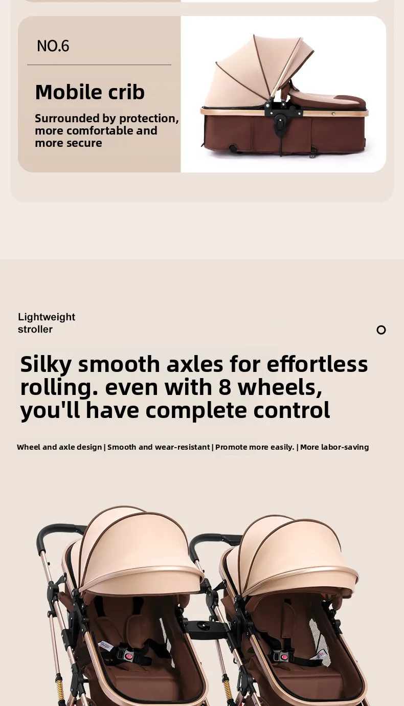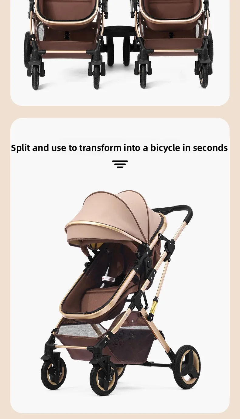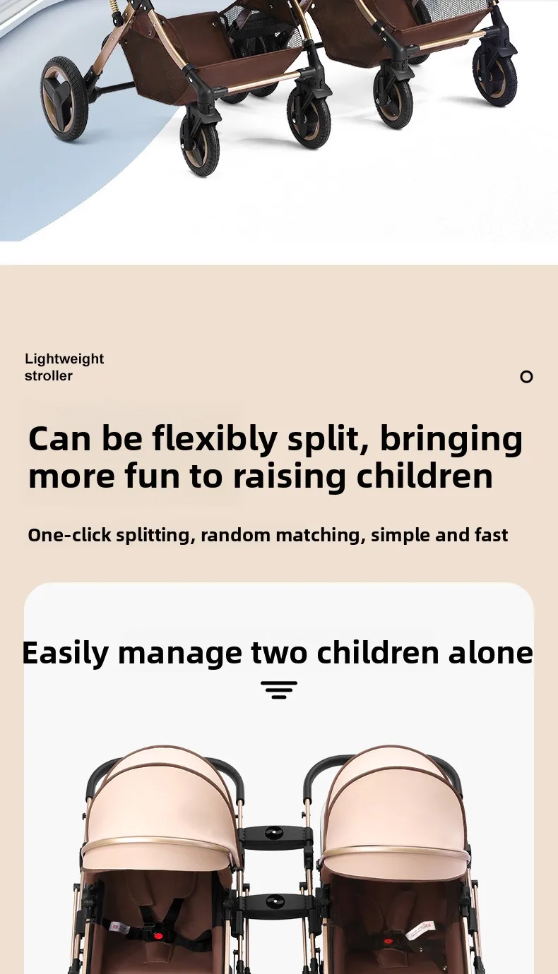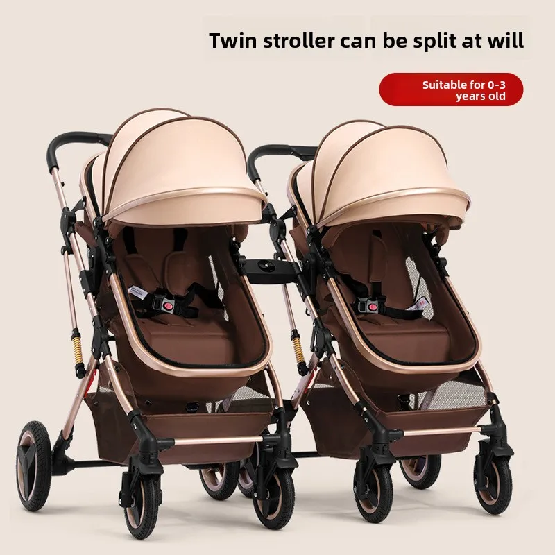 Comprar Cochecitos gemelos bidireccionales sentarse y acostarse divididos y plegados.