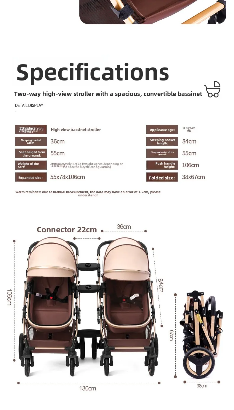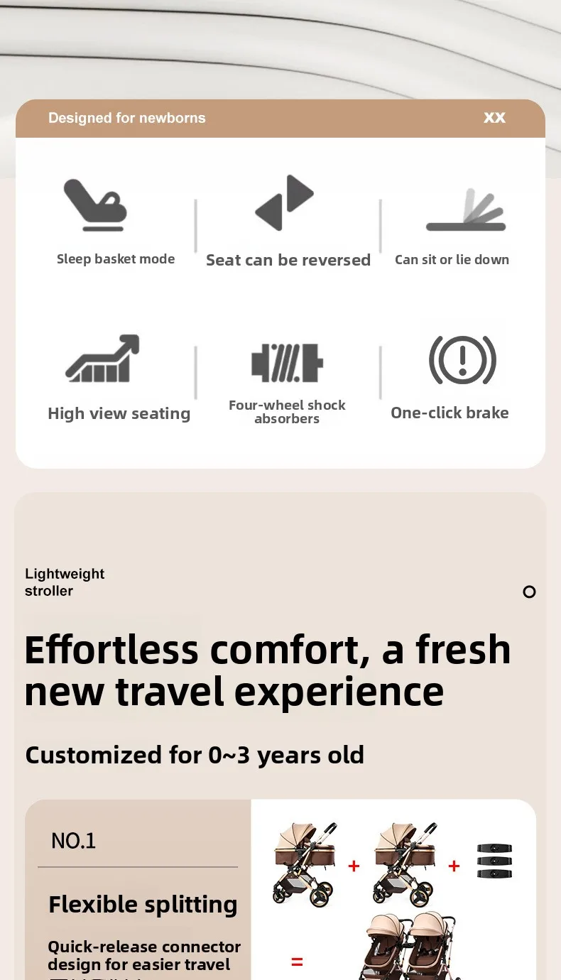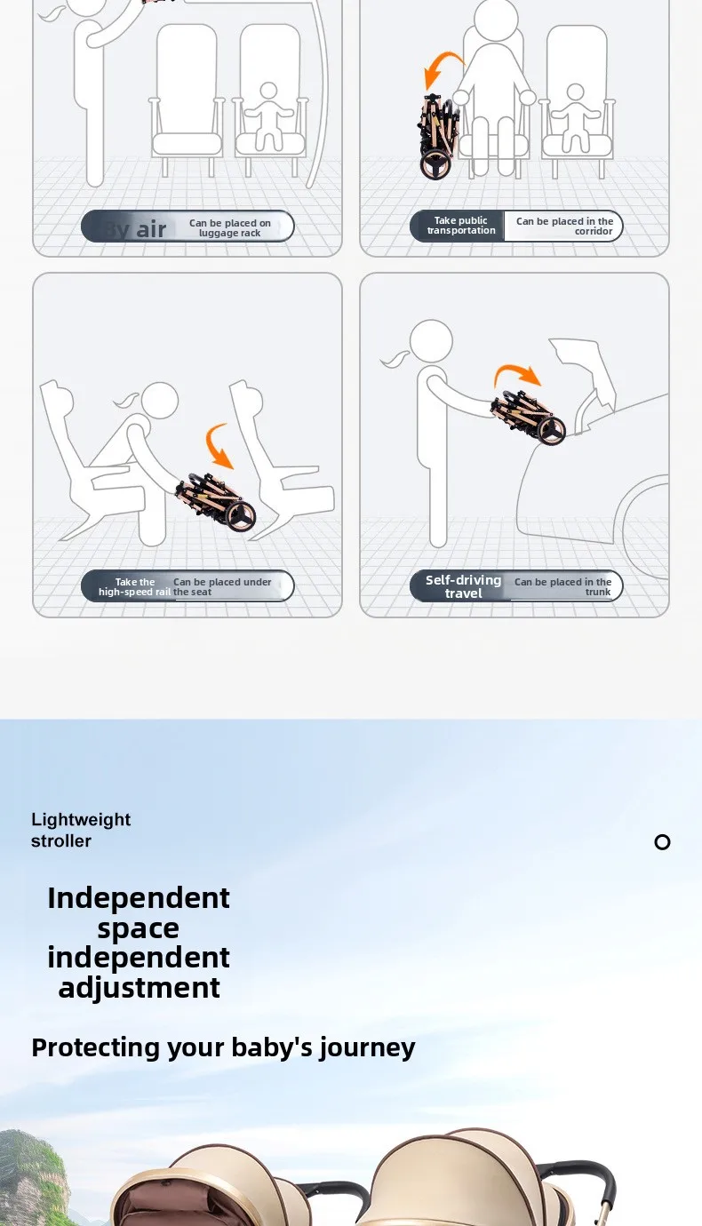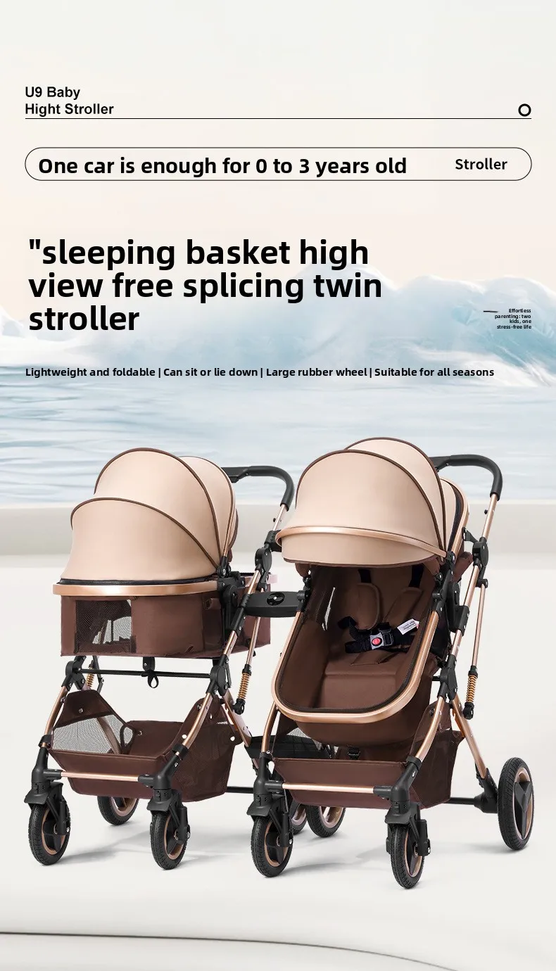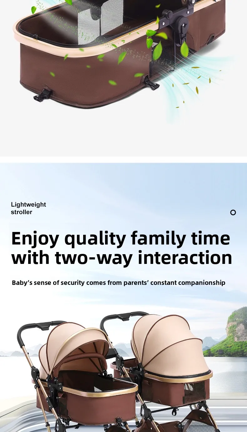 Comprar Cochecitos gemelos bidireccionales sentarse y acostarse divididos y plegados.