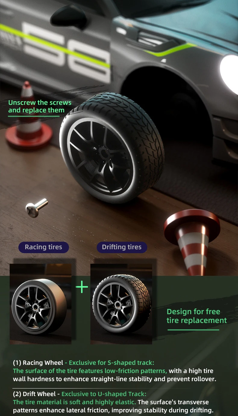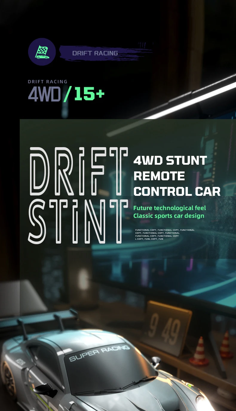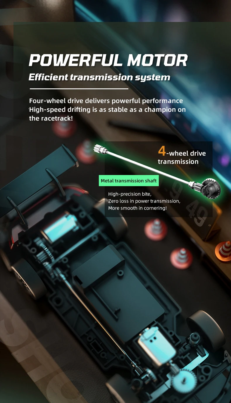 1.Las luces geniales del coche, encendido y apagado ajustables, las luces traseras hacen que el juego nocturno sea más emocionante2.Deriva de tracción en las cuatro ruedas, conmutación de doble neumático, dos velocidades ajustables, juego fluido y sin obstáculos