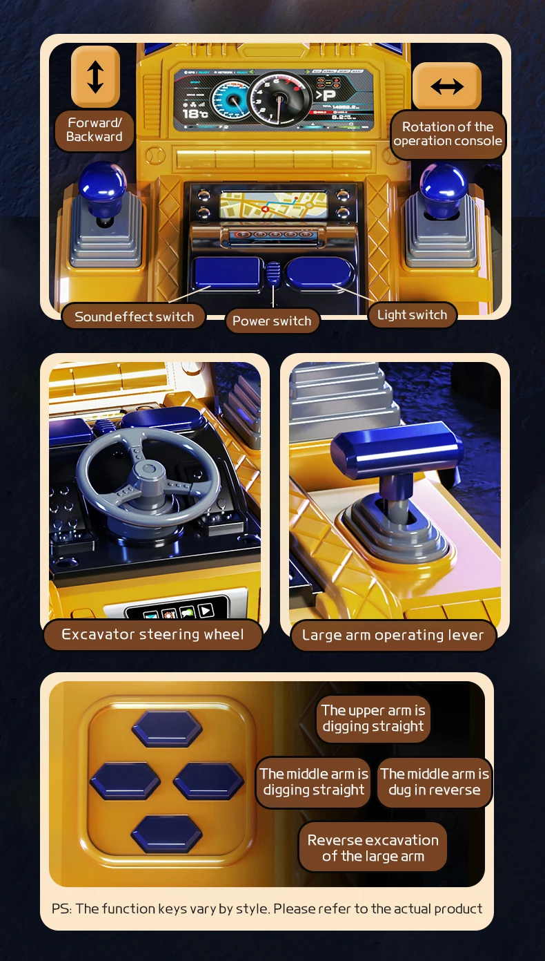 【12 canales】 Luces, música, adelante, atrás, giro a la izquierda, giro a la derecha, rotación a la izquierda y a la derecha en el lugar, excavación hacia adelante en una sección del brazo, empuje inverso en una sección del brazo, giro a la izquierda del puente, giro a la derecha del puente