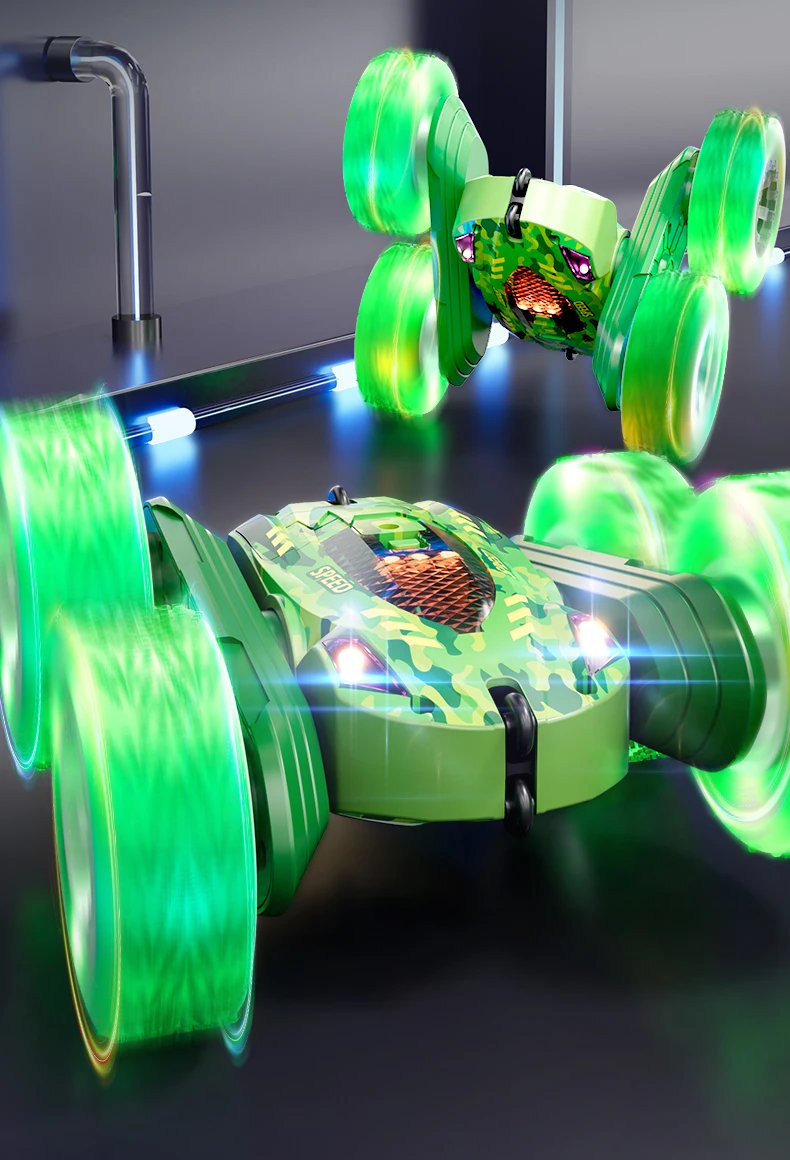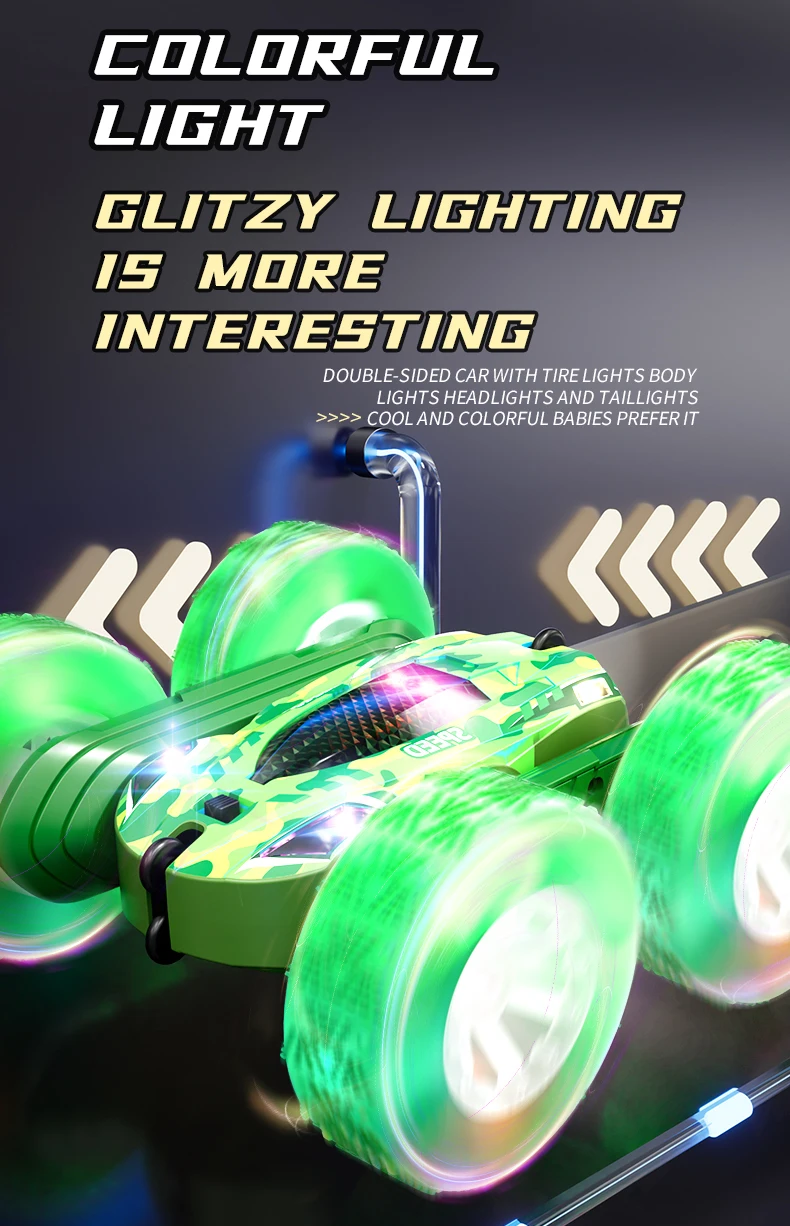 3 Libera el conductor de acrobacias interior: ¡Nuestro coche de acrobacias RC está diseñado para niños que aman la aventura y la emoción!Puede girarse y girar 360 grados y conducir por ambos lados, lo que ofrece una experiencia emocionante y única para niños e incluso adultos por igual, con un rendimiento todoterreno, nuestro automóvil con control remoto puede manejar varios terrenos, como arena, césped, piedra. Carretera y más, convirtiéndolo para llevar tus acrobacias y carreras a donde quieras.