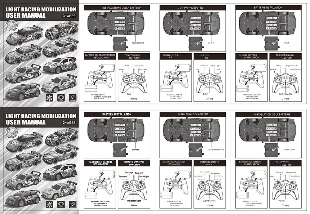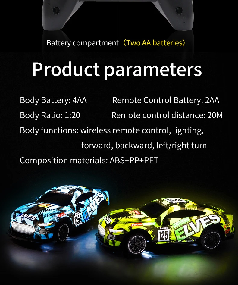 Batería del cuerpo: 4AA (no incluida), batería del control remoto: 2AA (no incluida)