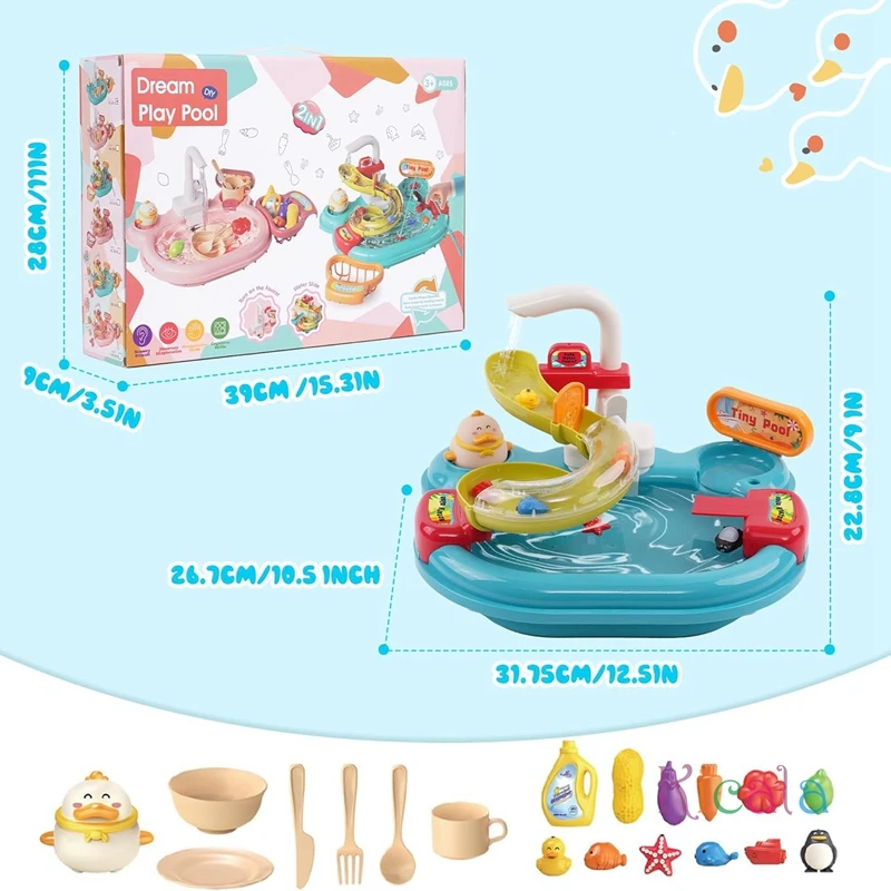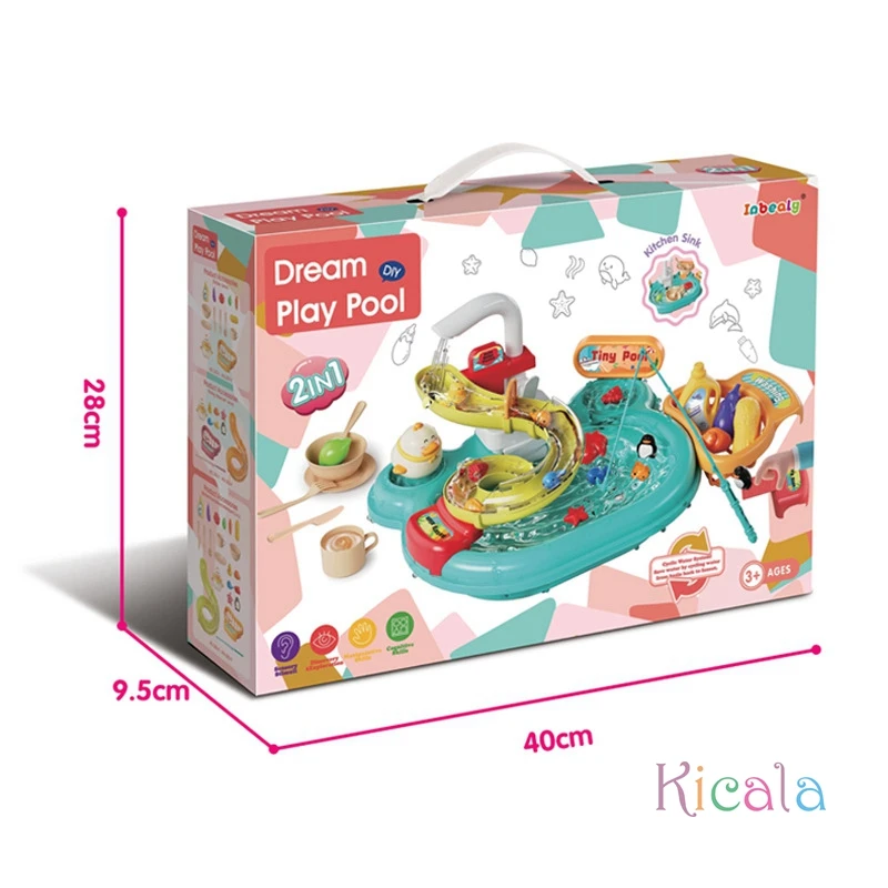 Cocina juega comida fregadero de cocina juguetes 3 en 1 pesca piscina juguetes imitación juego de rol juguetes para niños niñasDivertidos juguetes acuáticos: ¡Experimenta el mejor juego acuático con nuestro juguete acuático interactivo!Desde lavar platos y verduras hasta pescar y bucear desde la plataforma, este juguete todo en uno brinda horas de diversión sin fin para sus pequeños.