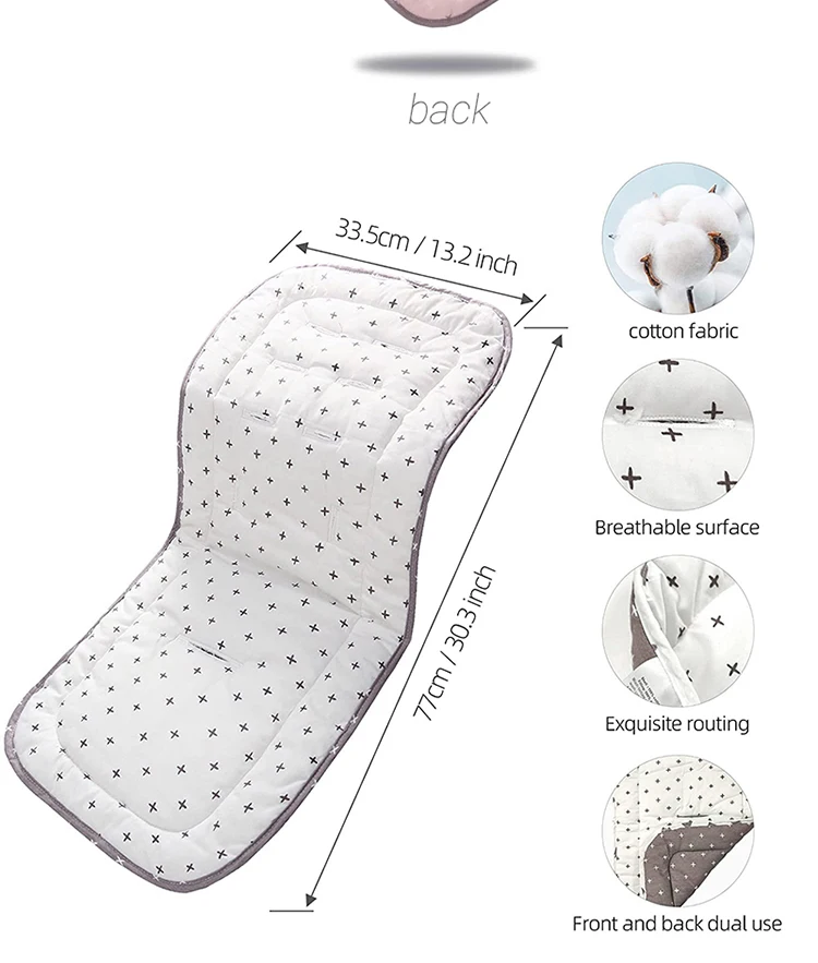 • Material de algodón :Este cojín de silla para carrocería de bebé está hecho de algodón, proporcionando una comodidad suave y transpirable para la piel delicada del bebé.