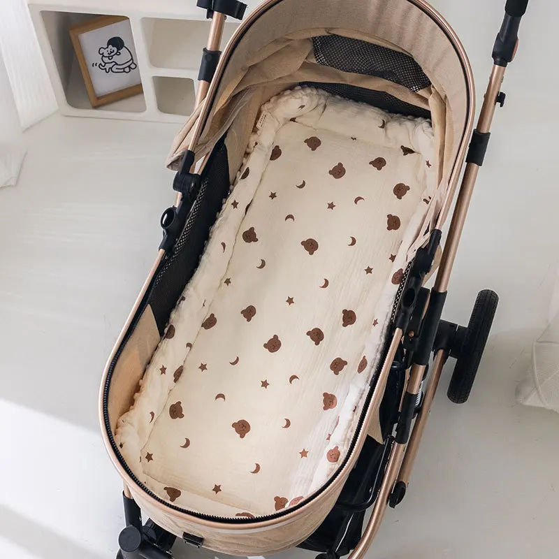 Cojín de asiento de cochecito suave de dibujos animados para bebé, funda de asiento de cochecito Universal antideslizante para recién nacido, colchones de cuna de algodón