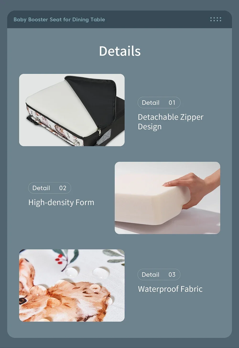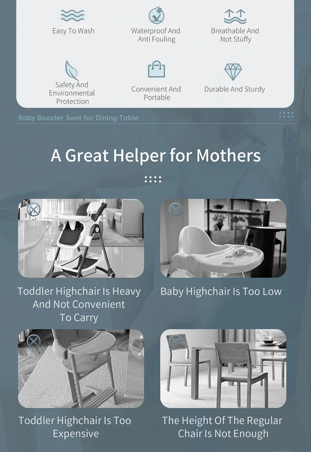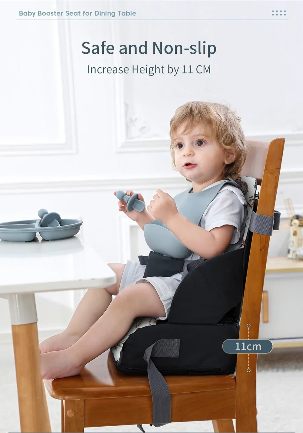 Cojín elevador de asiento para mesa de comedor para niños, cojín elevador de silla de comedor portátil extraíble para niños, cojín de asiento de esponja, estera antideslizante