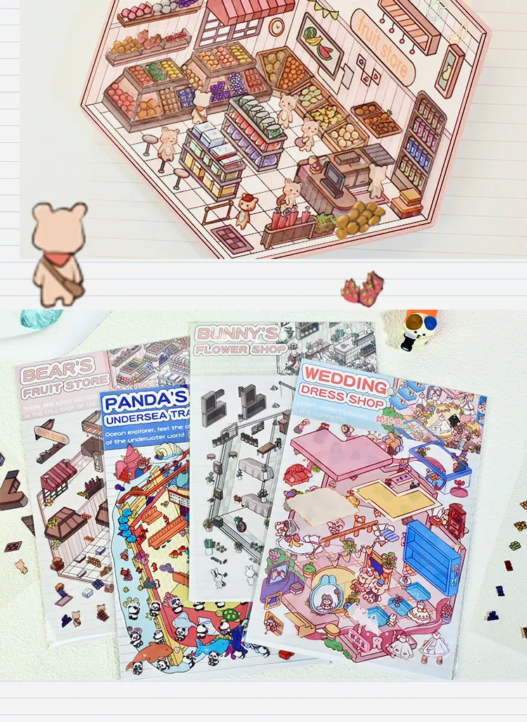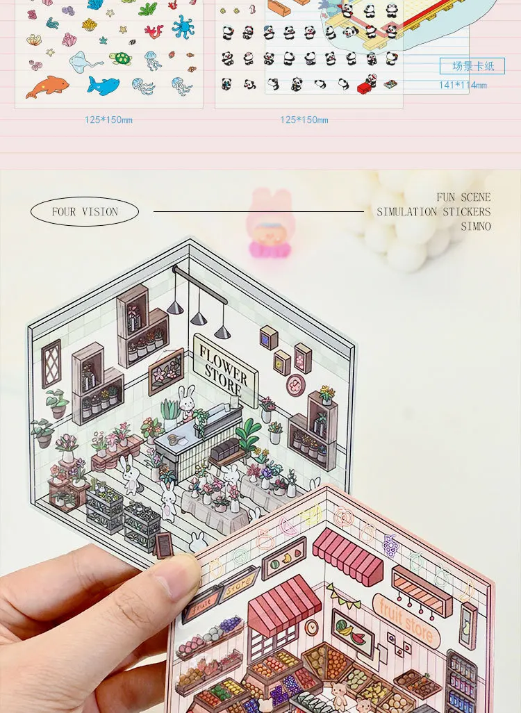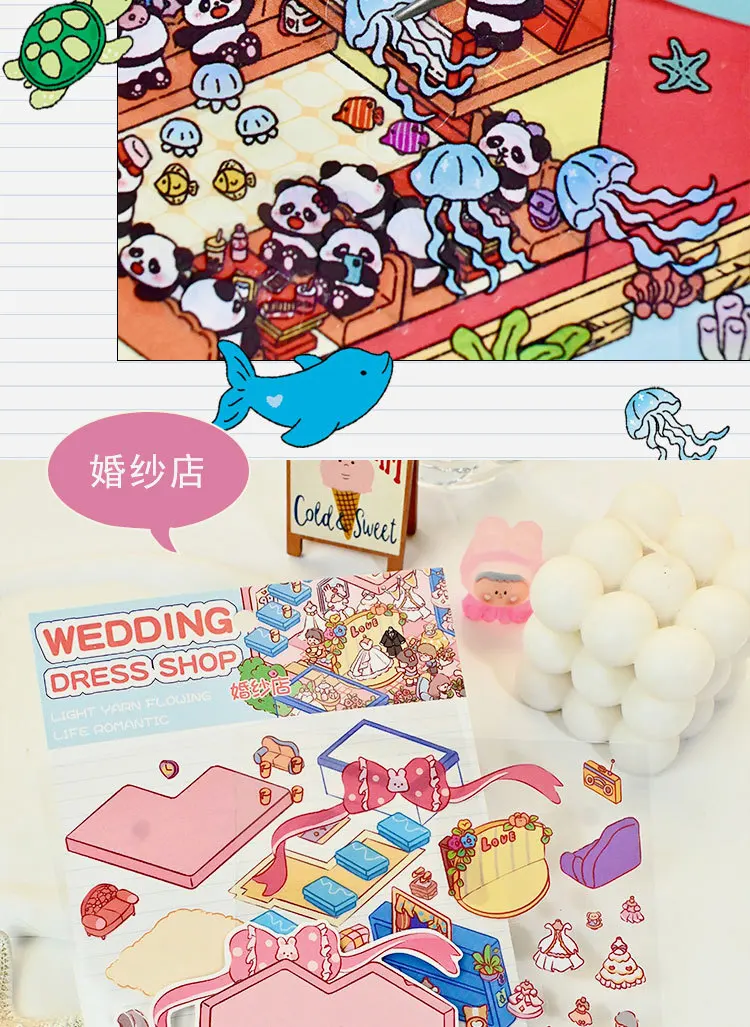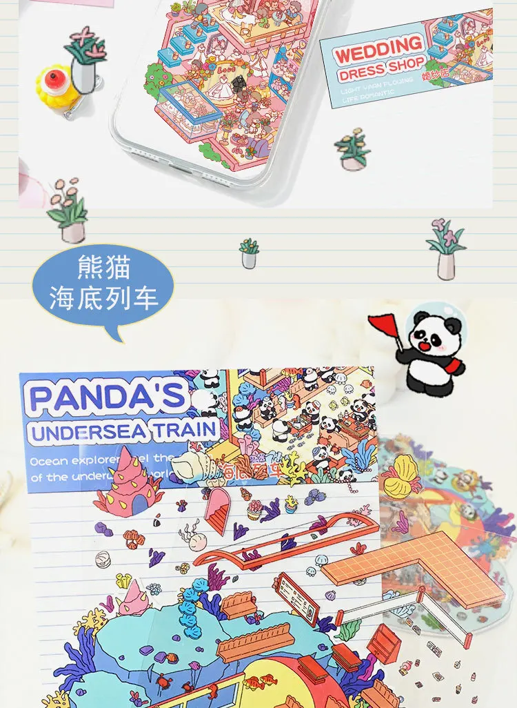 Colección de pegatinas de paisaje mundial en miniatura, pegatina Manual de Material PET de descompresión de nicho DIY