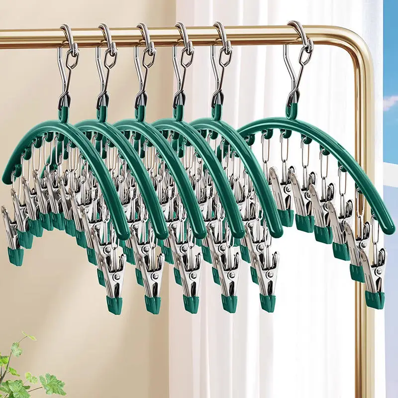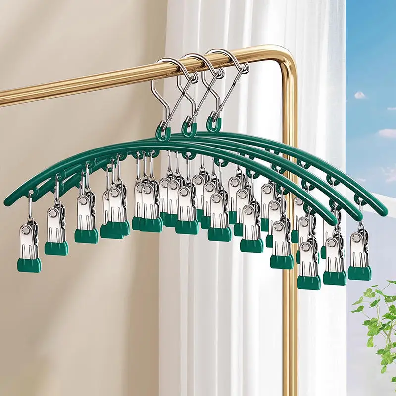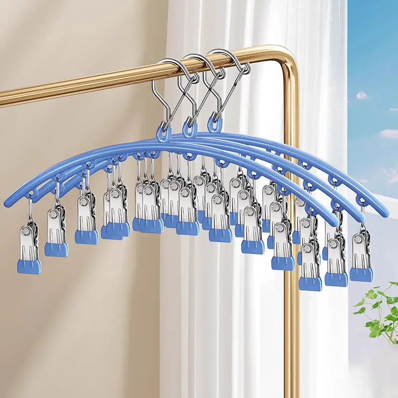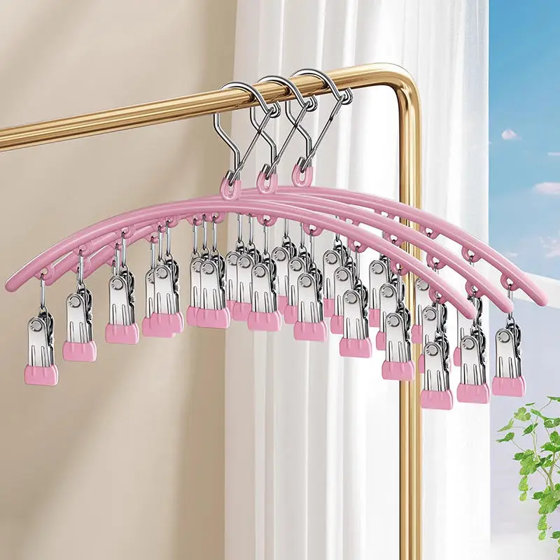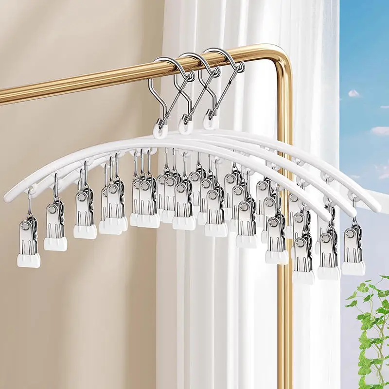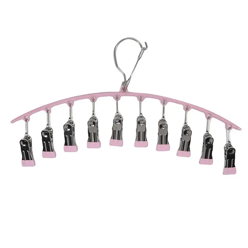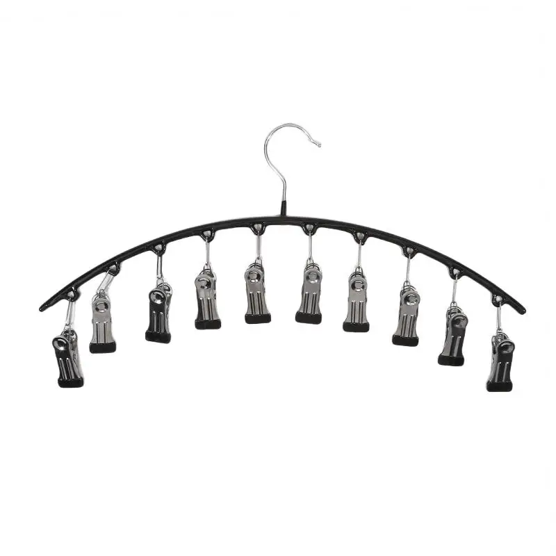 Comprar Colgador curvo para ahorro de espacio en el hogar, pantalones de Yoga y mallas, organizador de armario con 10 Clips para tienda de ropa, 1 ud.