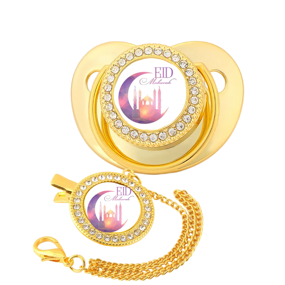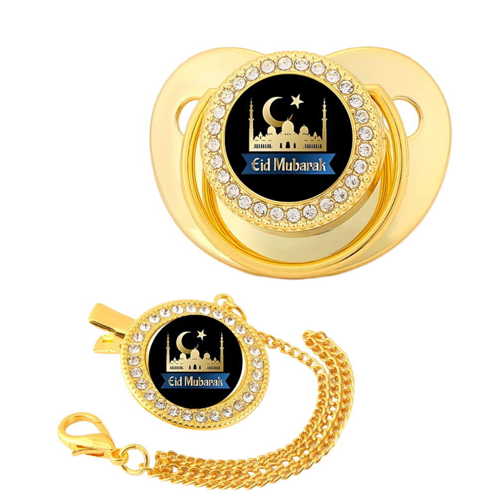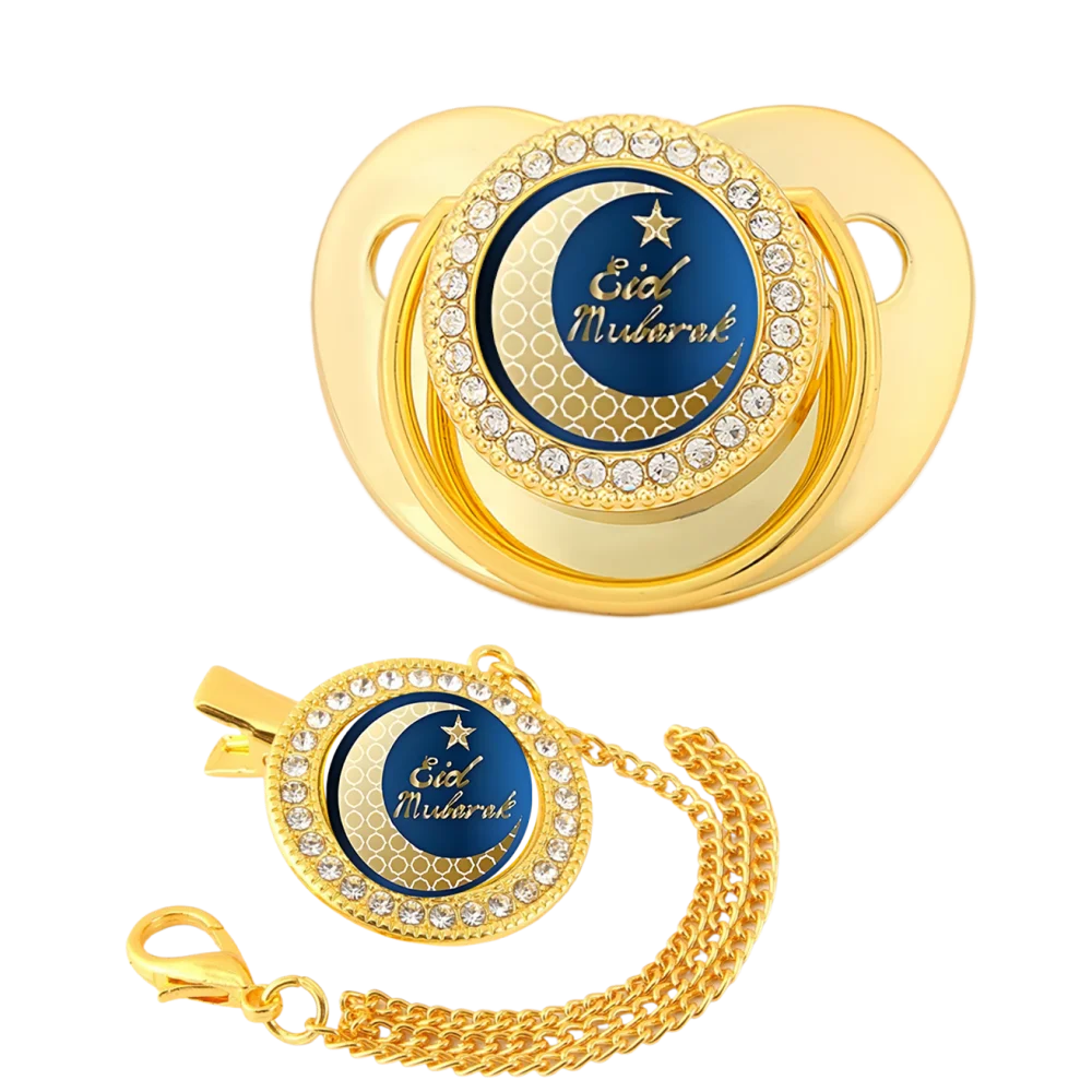 Colgante dorado de dibujos animados para bebé musulmán recién nacido, clip para chupete, soporte de cadena, dientes, juguete Kawaii para bebé, regalo masticable para la boca