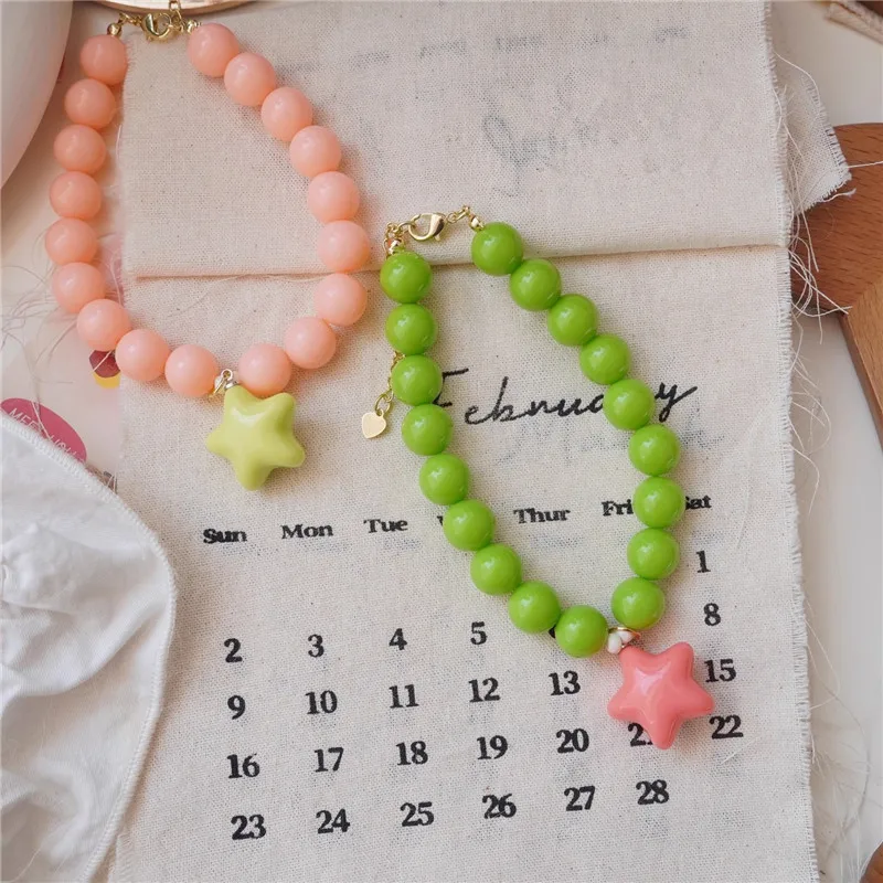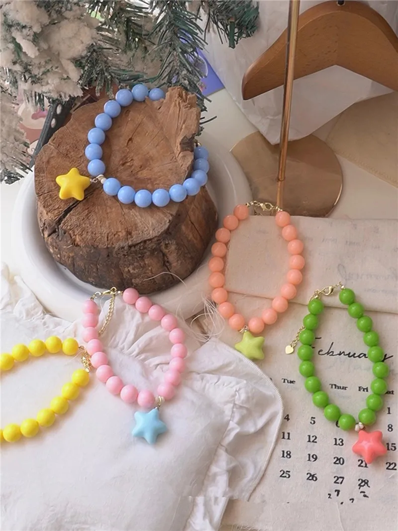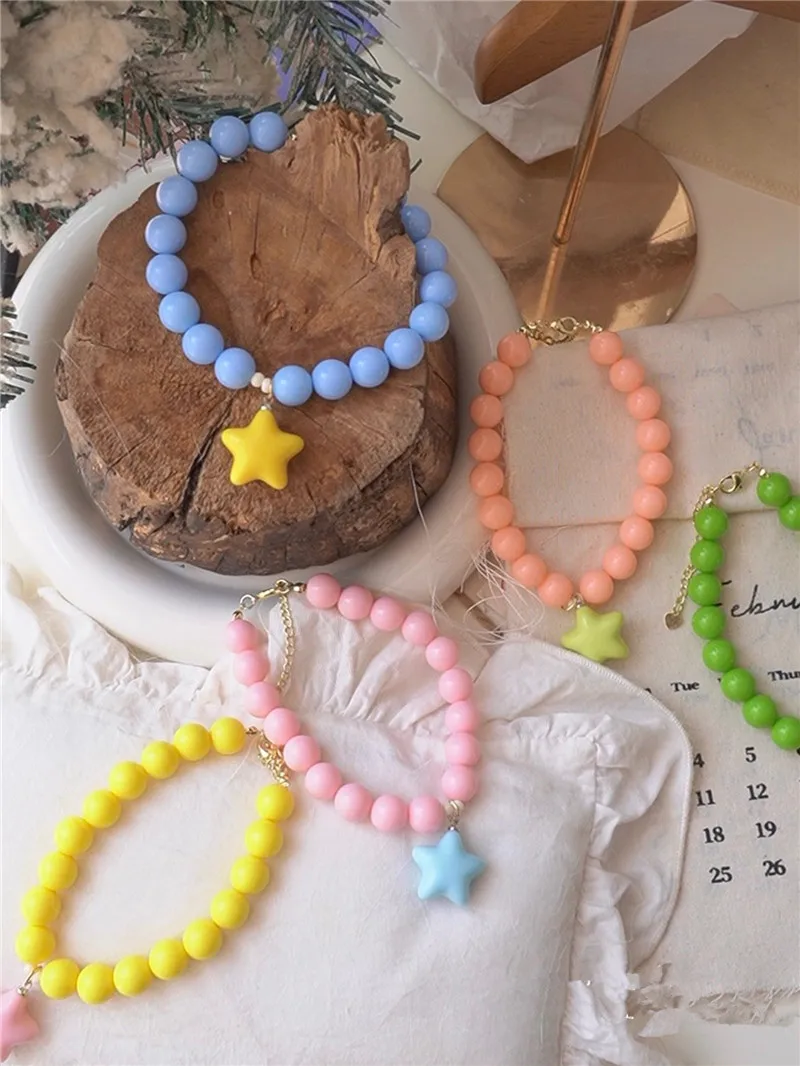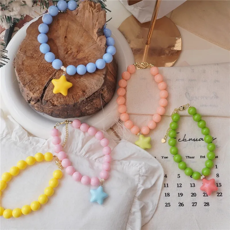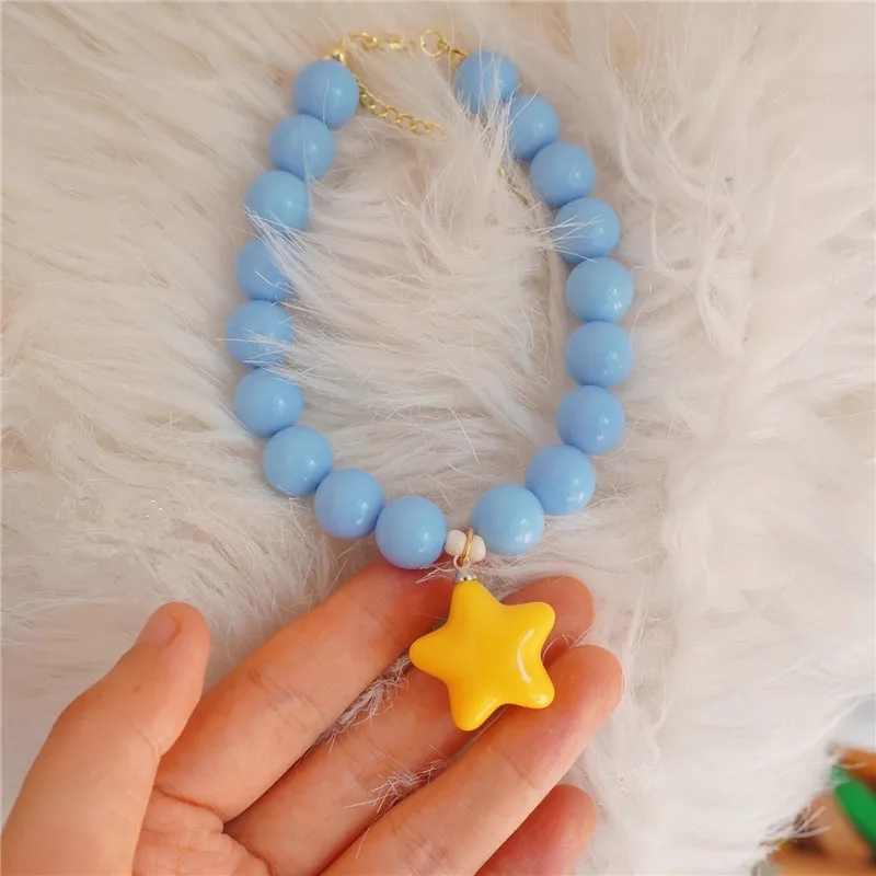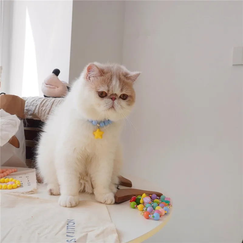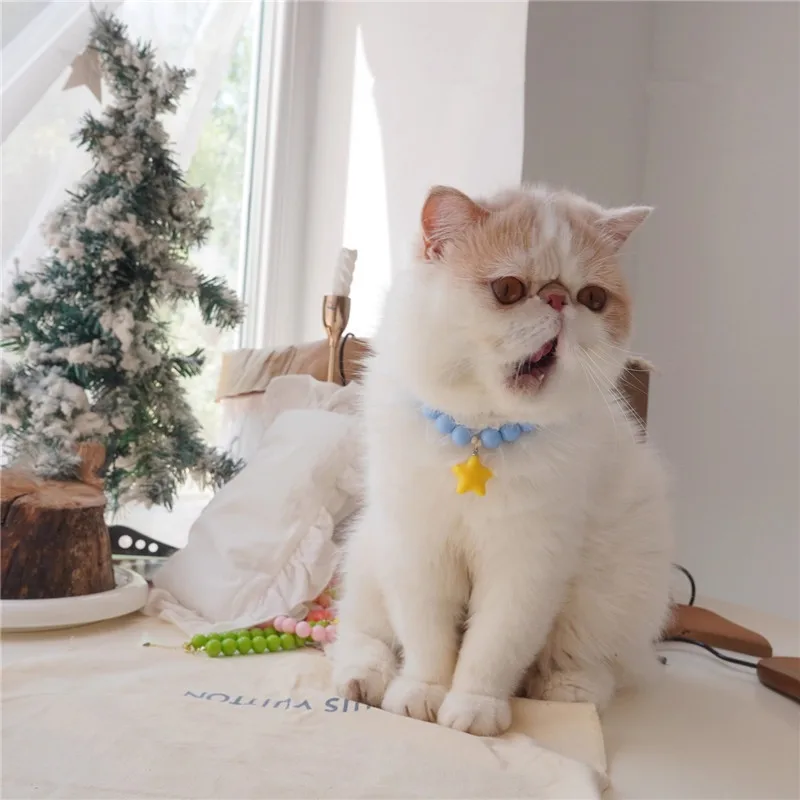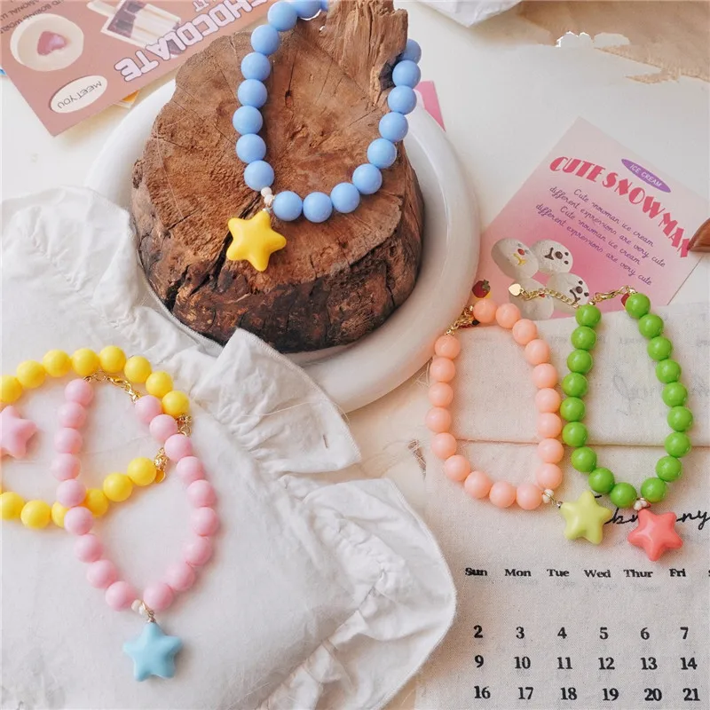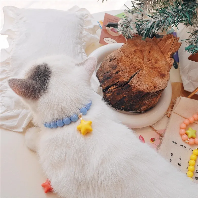 Collar ajustable para gato, colgante de estrellas Ins con cuentas, Collar para mascotas, Collar colorido bonito para el cuello del perro con accesorios