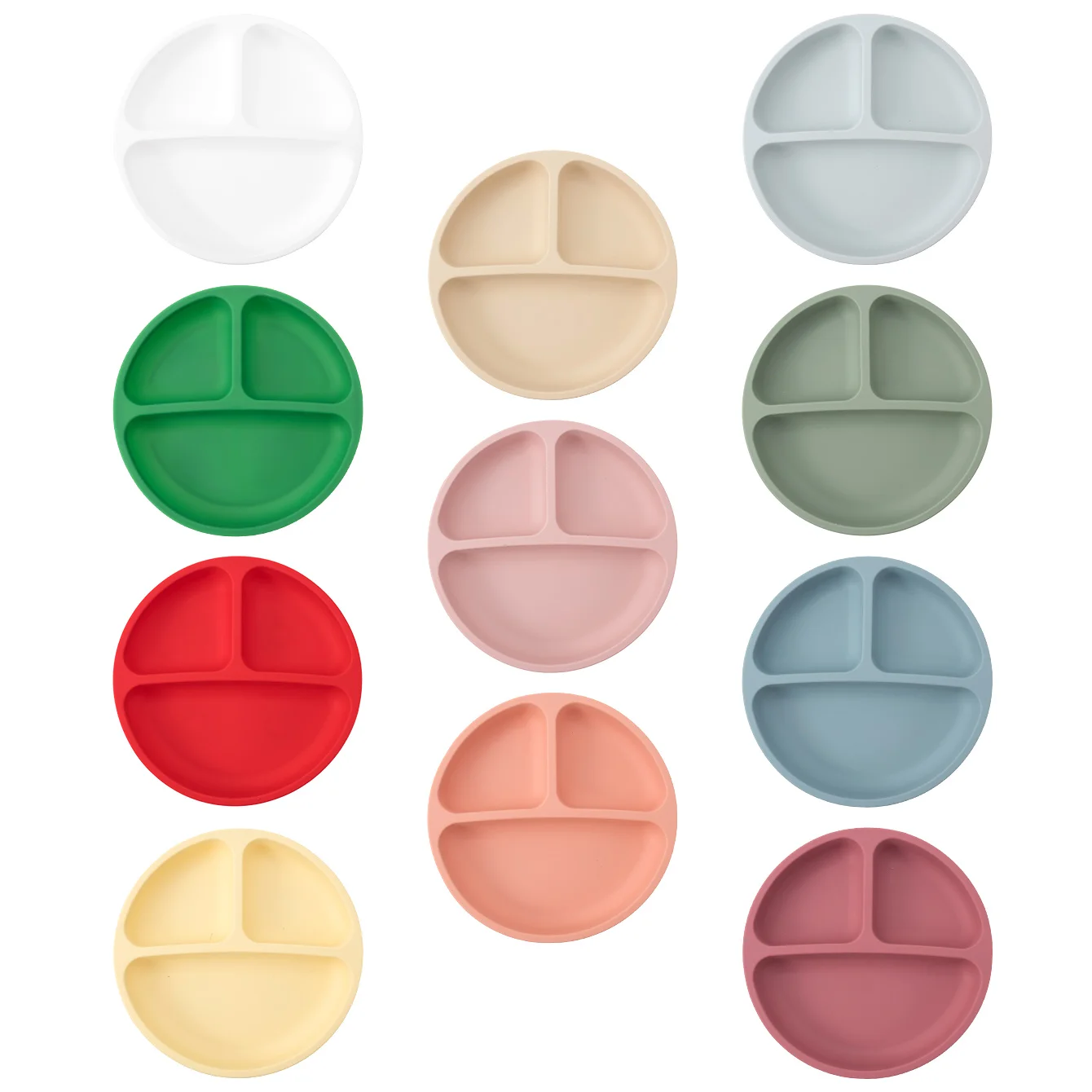 Color niños 1 pieza sin BPA plato de comedor de silicona para bebé con ventosa plato de alimentación de entrenamiento para niños vajilla para niños suministros de Navidad