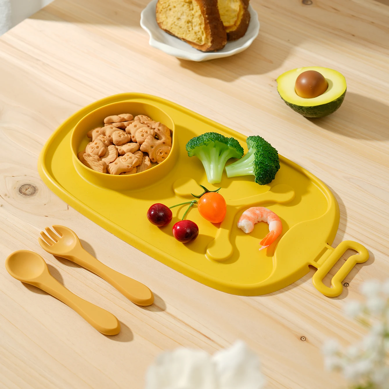 Color niños 1 Uds cuenco de silicona para bebé plato de alimentación antideslizante almacenamiento de entrenamiento platos portátiles plato vajilla regalo de Baby Shower