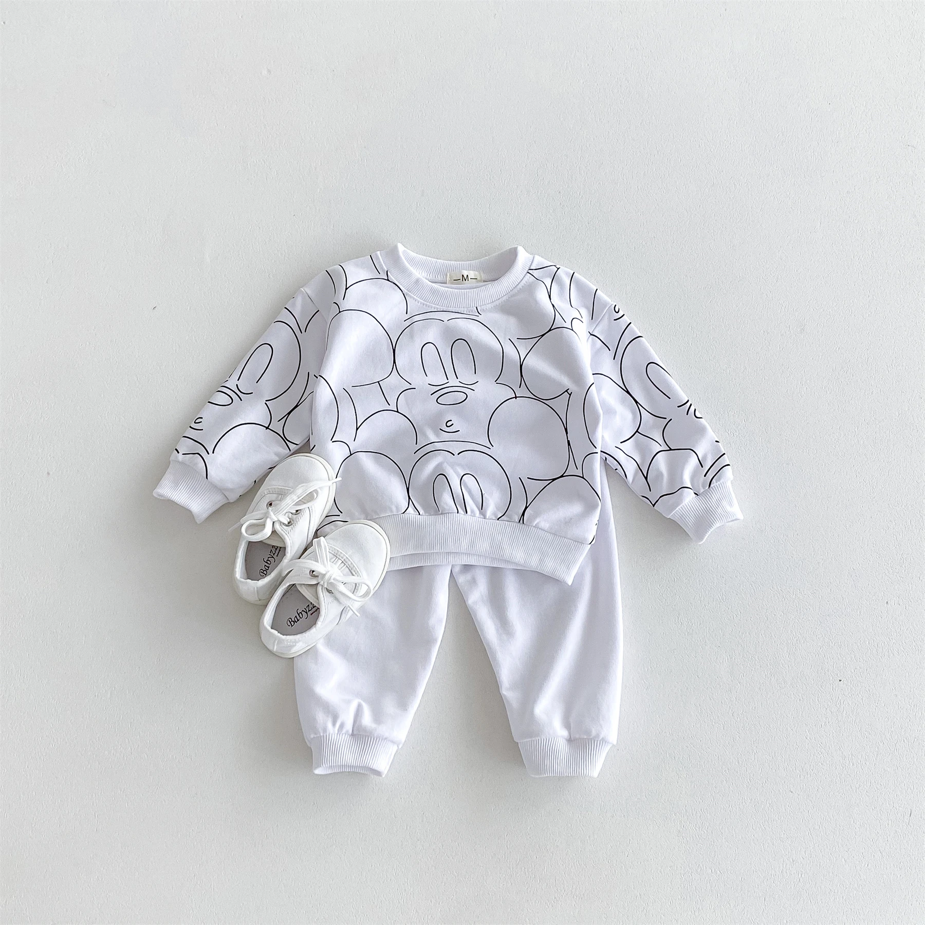Color sólido de dos piezas niños Mickey Mouse Sudadera con capucha pantalones de chándal trajes niño 2025 otoño disfraz niños niñas chándales de manga larga