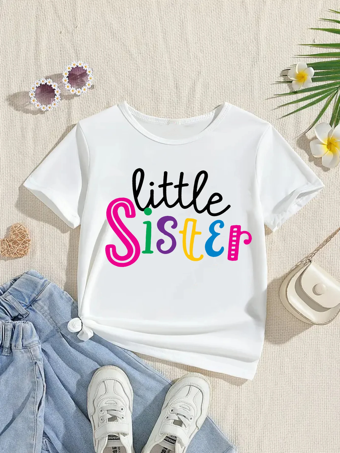 Coloré grande soeur chargement 2026 imprimé t-shirt filles moyen soeur famille correspondant t-shirt annonce de grossesse chemise