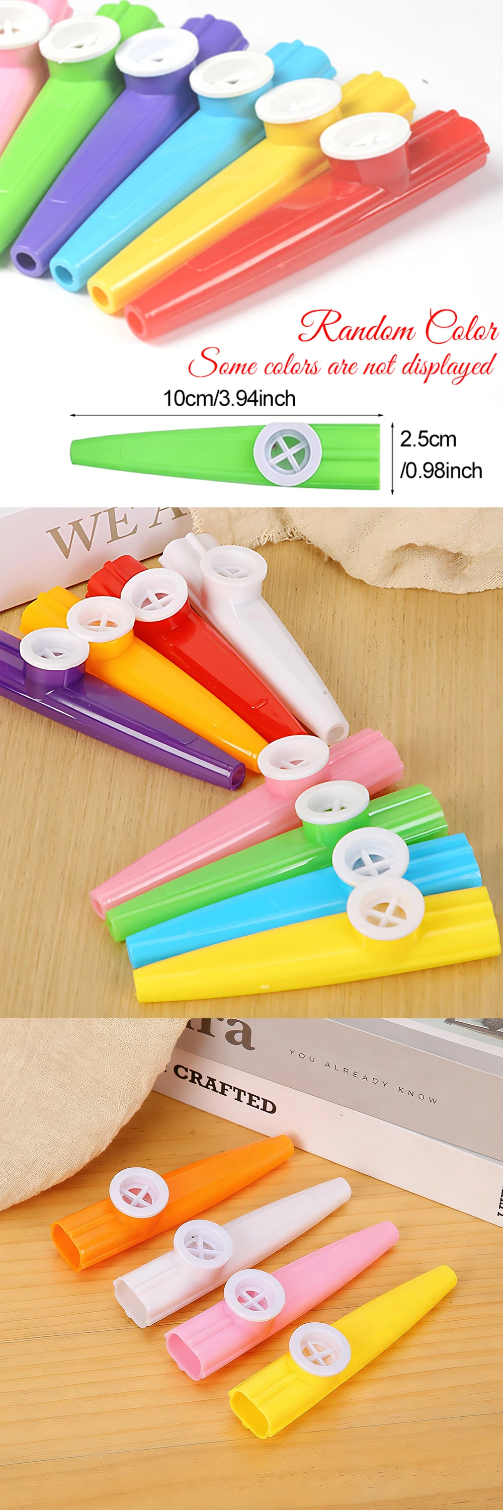 Detalles:Nombre del producto: Silbato Kazoo de plásticoMaterial del producto: plásticoColor del producto: como se muestra en la imagen.Tamaño del producto: mostrar como en la imagenPaquete del producto: Bolsa OPPCaracterísticas:Nuevo y de alta calidad.Nota:Sin la caja de color original, usaremos PE o una bolsa de burbujas para empaquetarlo bien y protegerlo bien.No te preocupes.Si el artículo está dañado, contáctanos primero inmediatamente antes de dejar un comentario, gracias por tu comprensión.Debido a la medida manual, el tamaño puede tener un error de 1-4 cm.Debido a los diferentes monitores, el color puede tener diferencias.