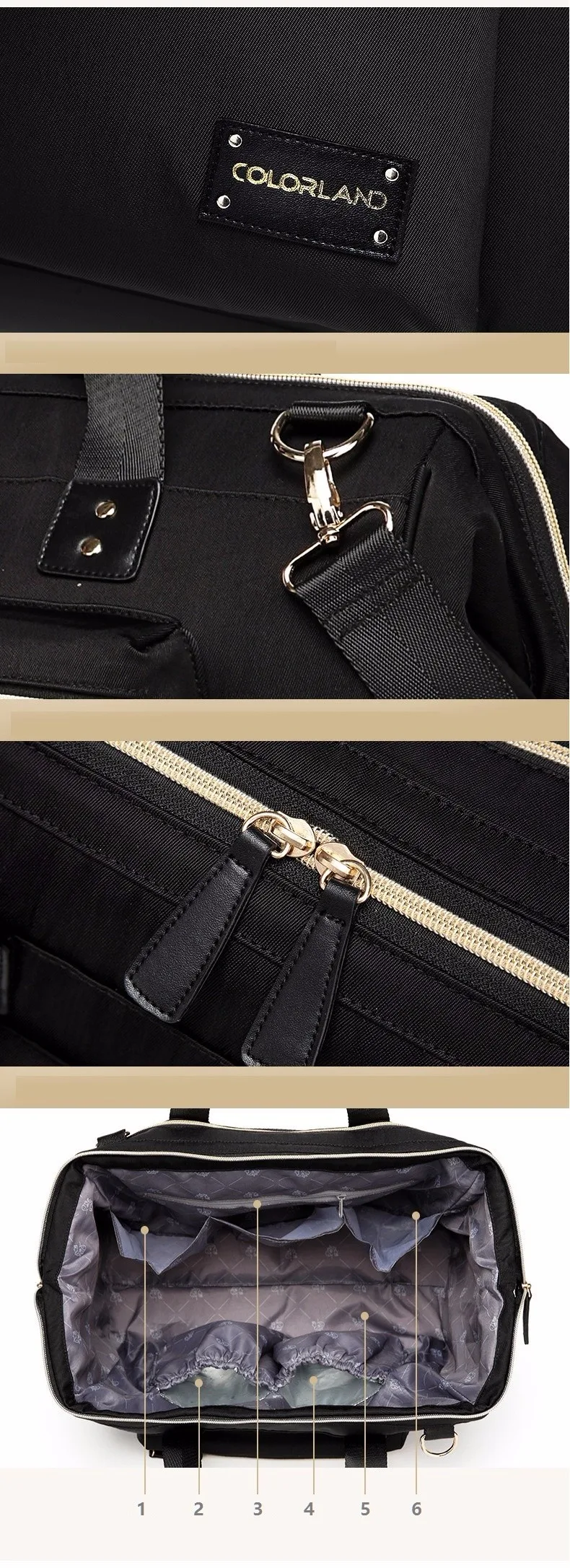 Colorland Mummy Bolsa de pañales de maternidad Bolsa de bebé de gran capacidad de marca Mochila de viaje Bolsa de enfermería