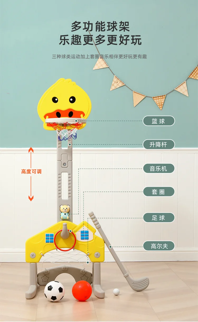 Comprar Columpio de combinación para niños, Tobogán de pato de dibujos animados con música para interiores y exteriores, juego de parque infantil grande, tobogán deportivo, juguetes para niños