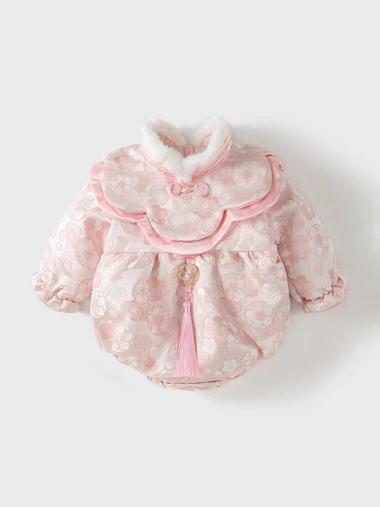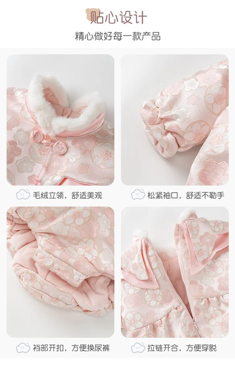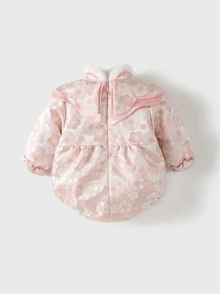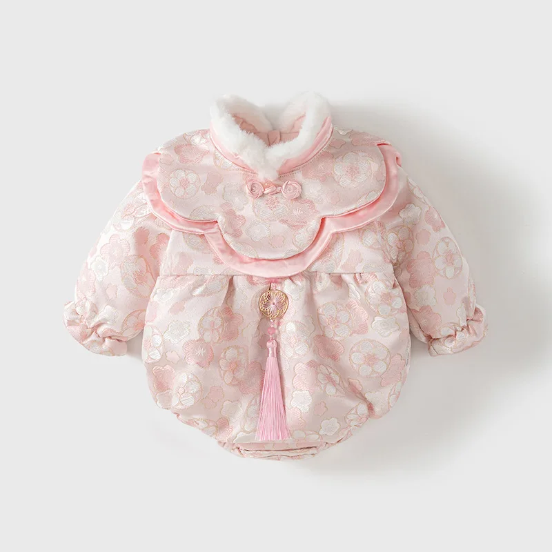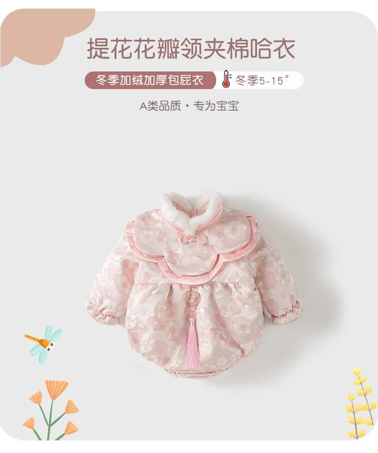 Combinaisons d'hiver pour bébé fille, Style chinois, fleurs mignonnes, body de princesse chaud et épais, une pièce, photographie pour nouveau-né BC752