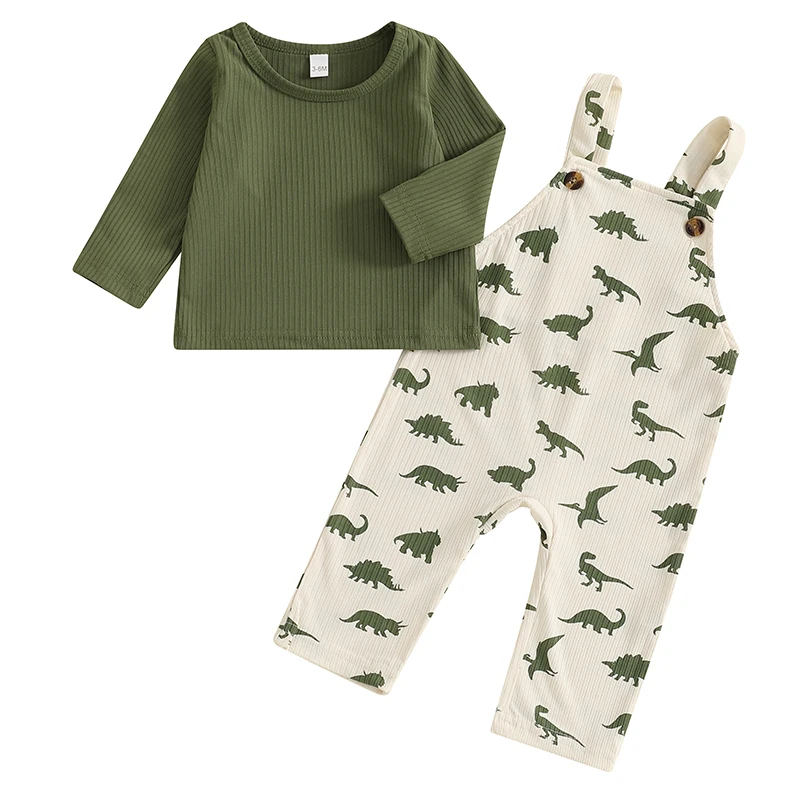 Comprar Conjunto de 2 piezas para bebé de 0 a 24 meses, ropa infantil de otoño, Tops acanalados de manga larga y monos con estampado de dinosaurio