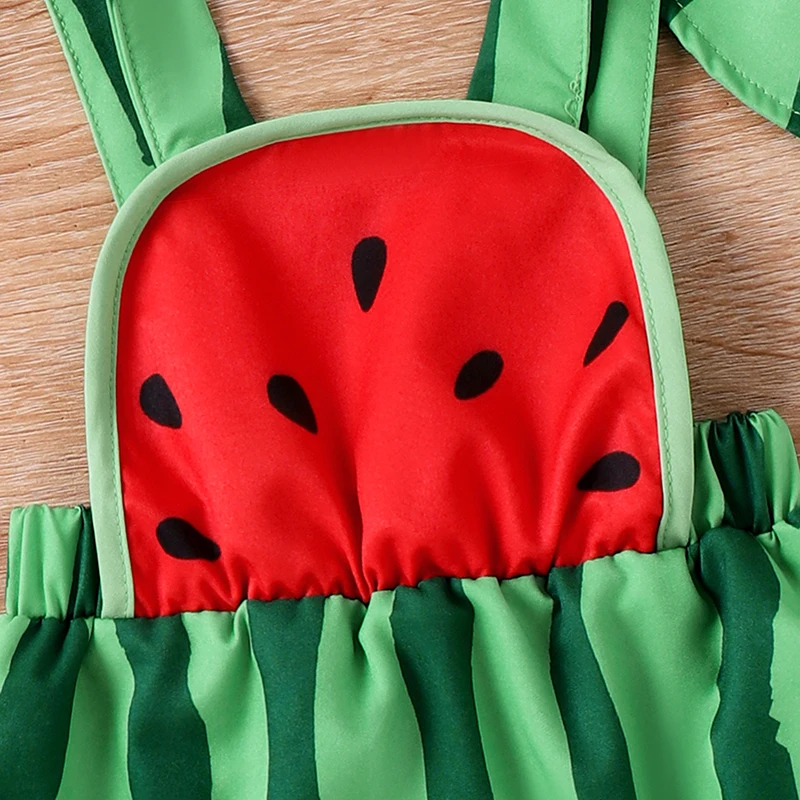 Comprar Conjunto de 2 piezas para bebé y niña, pelele sin mangas, gorro con Estampado de sandía, ropa infantil