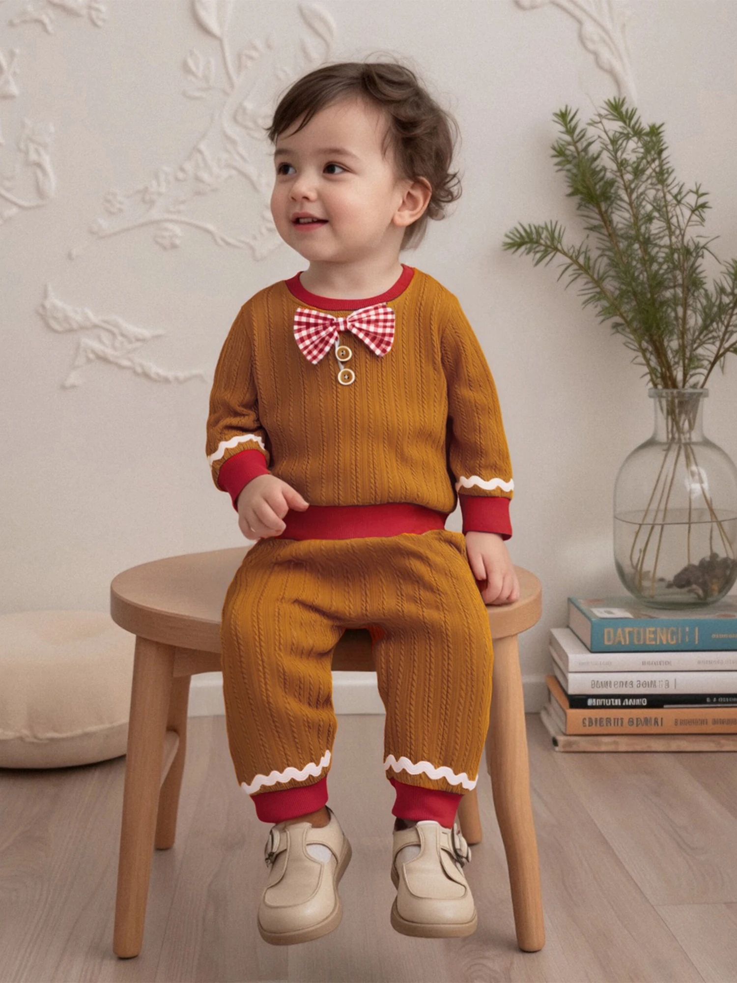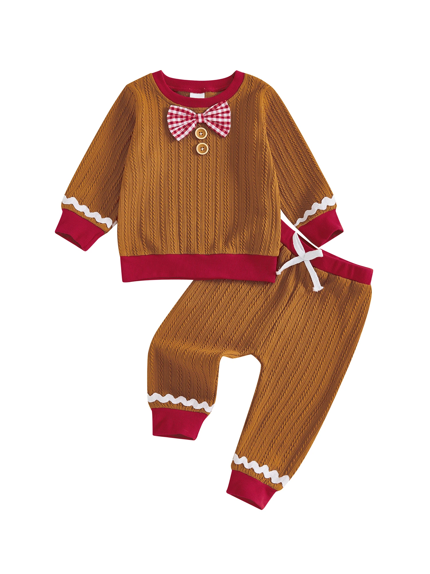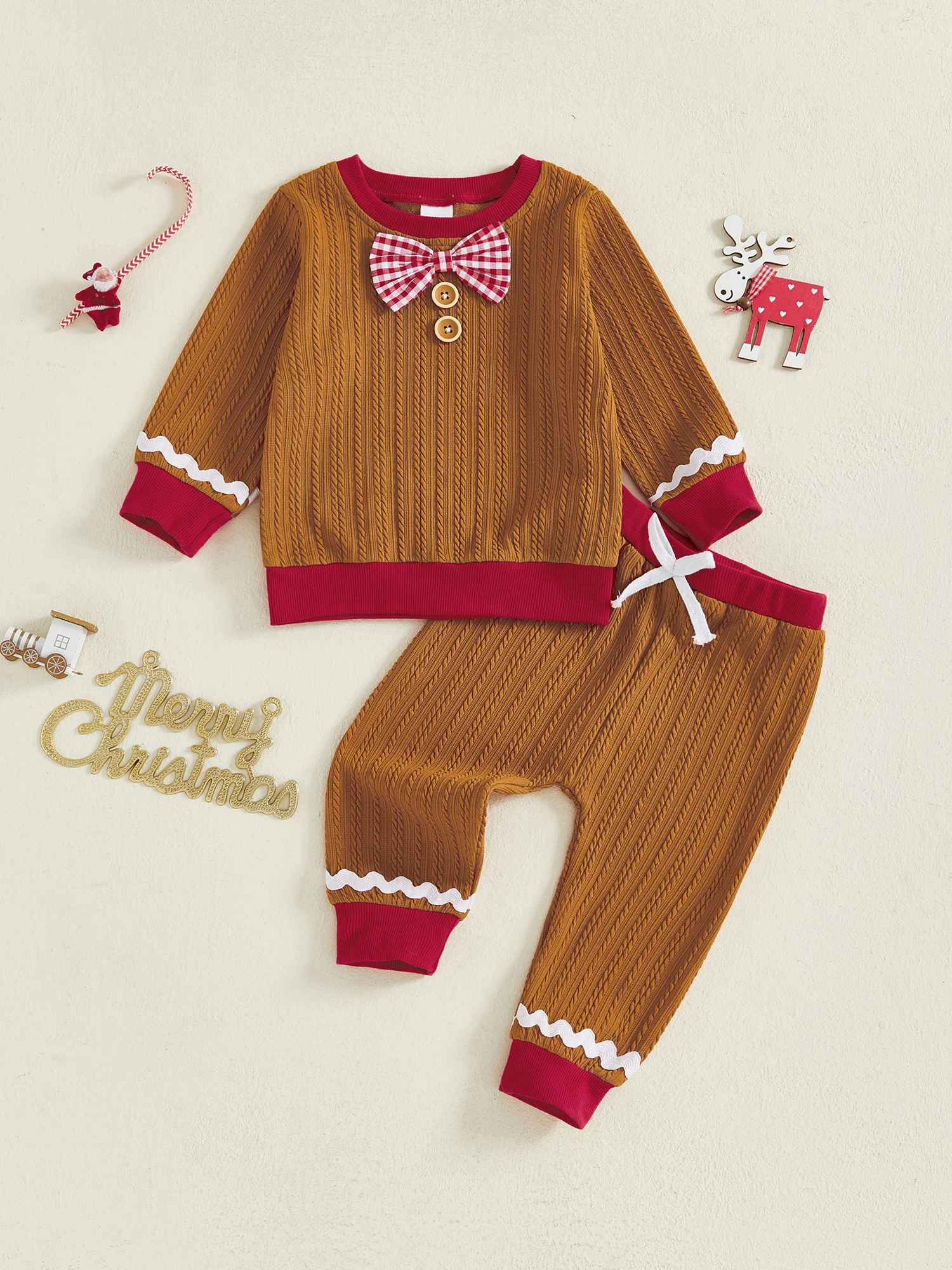Conjunto de 2 piezas de trajes navideños para bebé, jersey de manga larga con cuello redondo y pantalones de cintura elástica