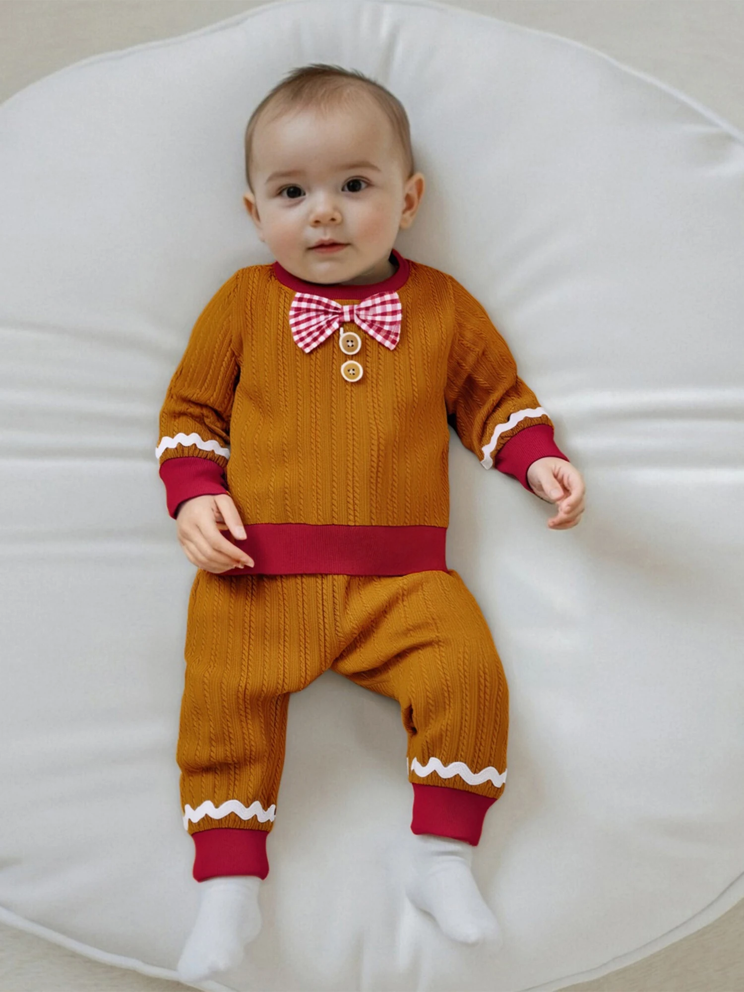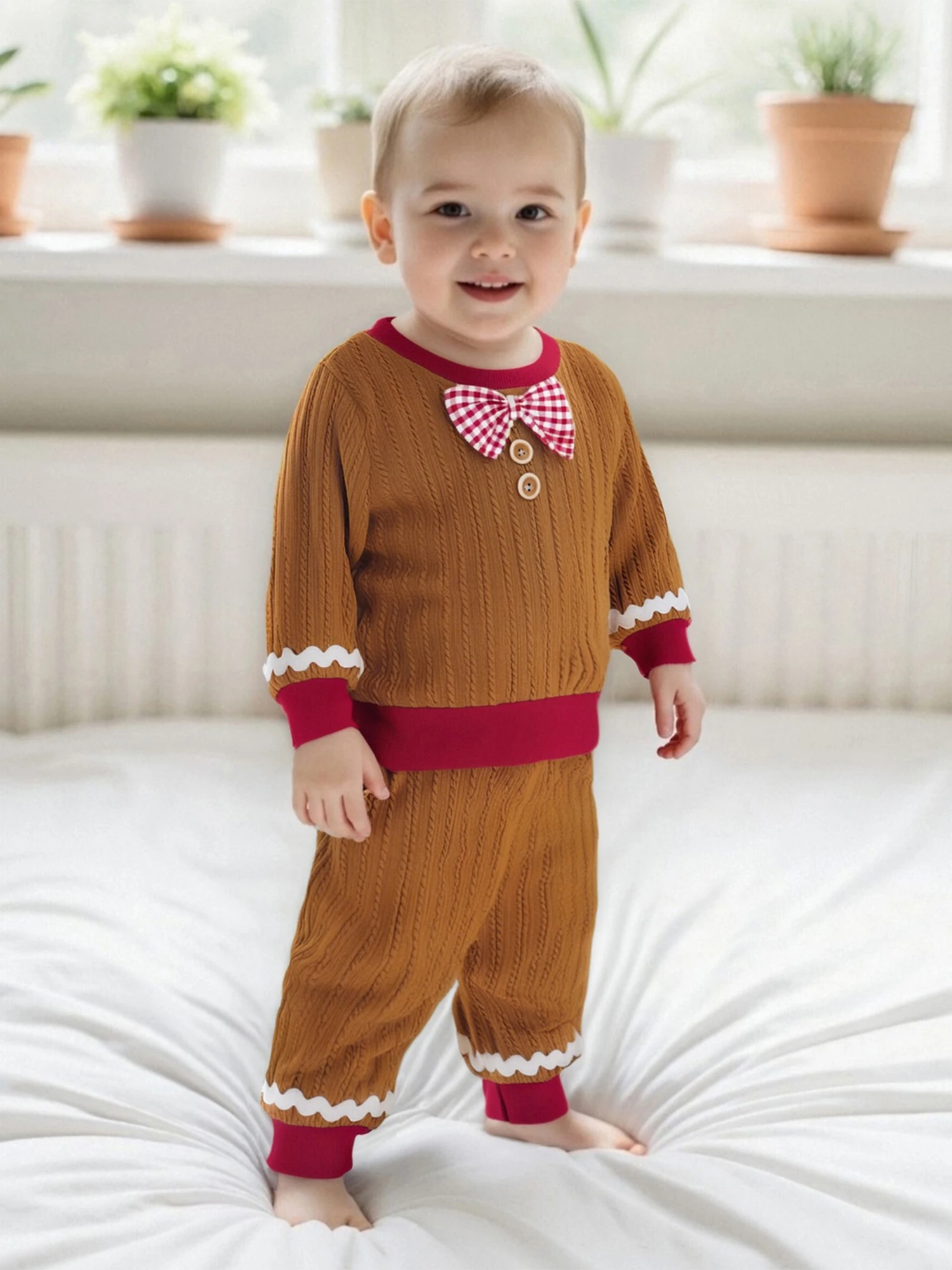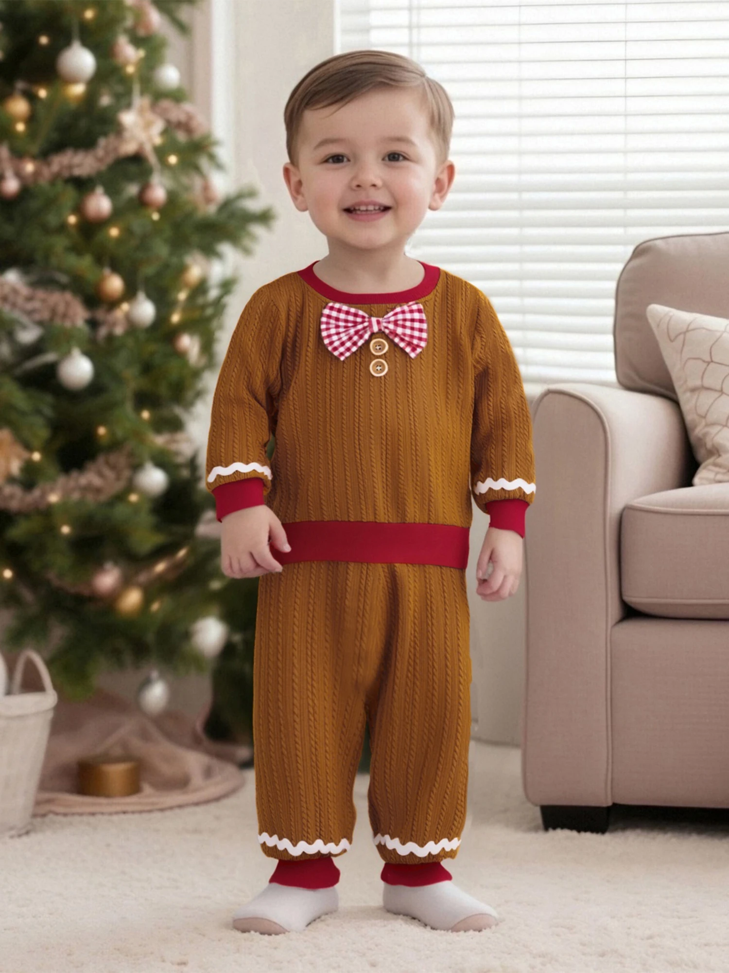 Conjunto de 2 piezas de trajes navideños para bebé, jersey de manga larga con cuello redondo y pantalones de cintura elástica