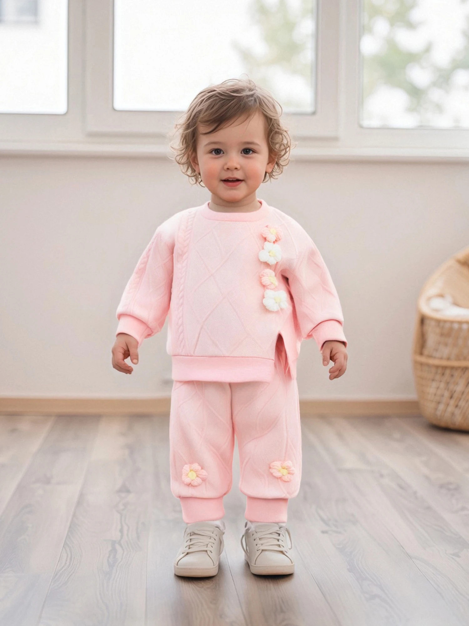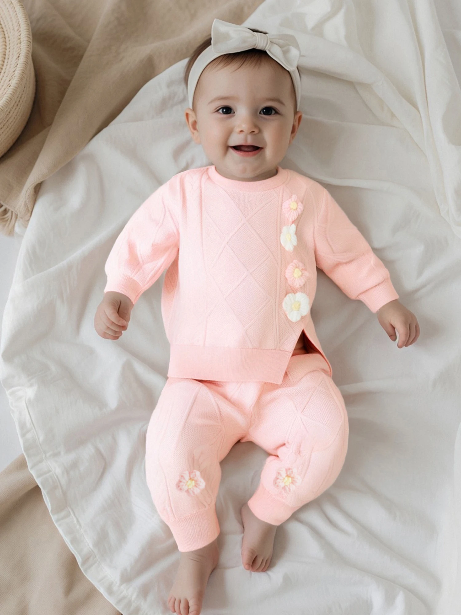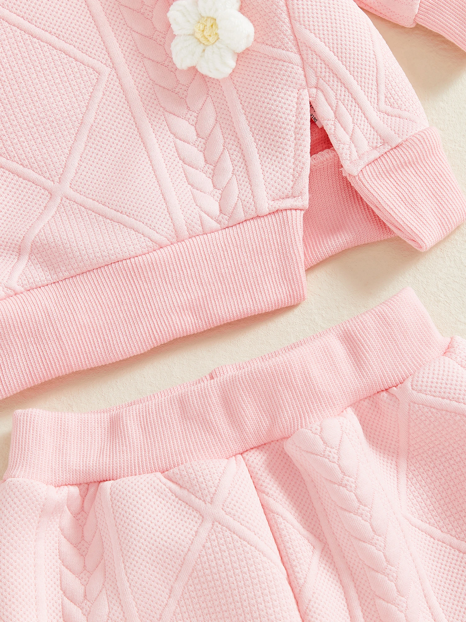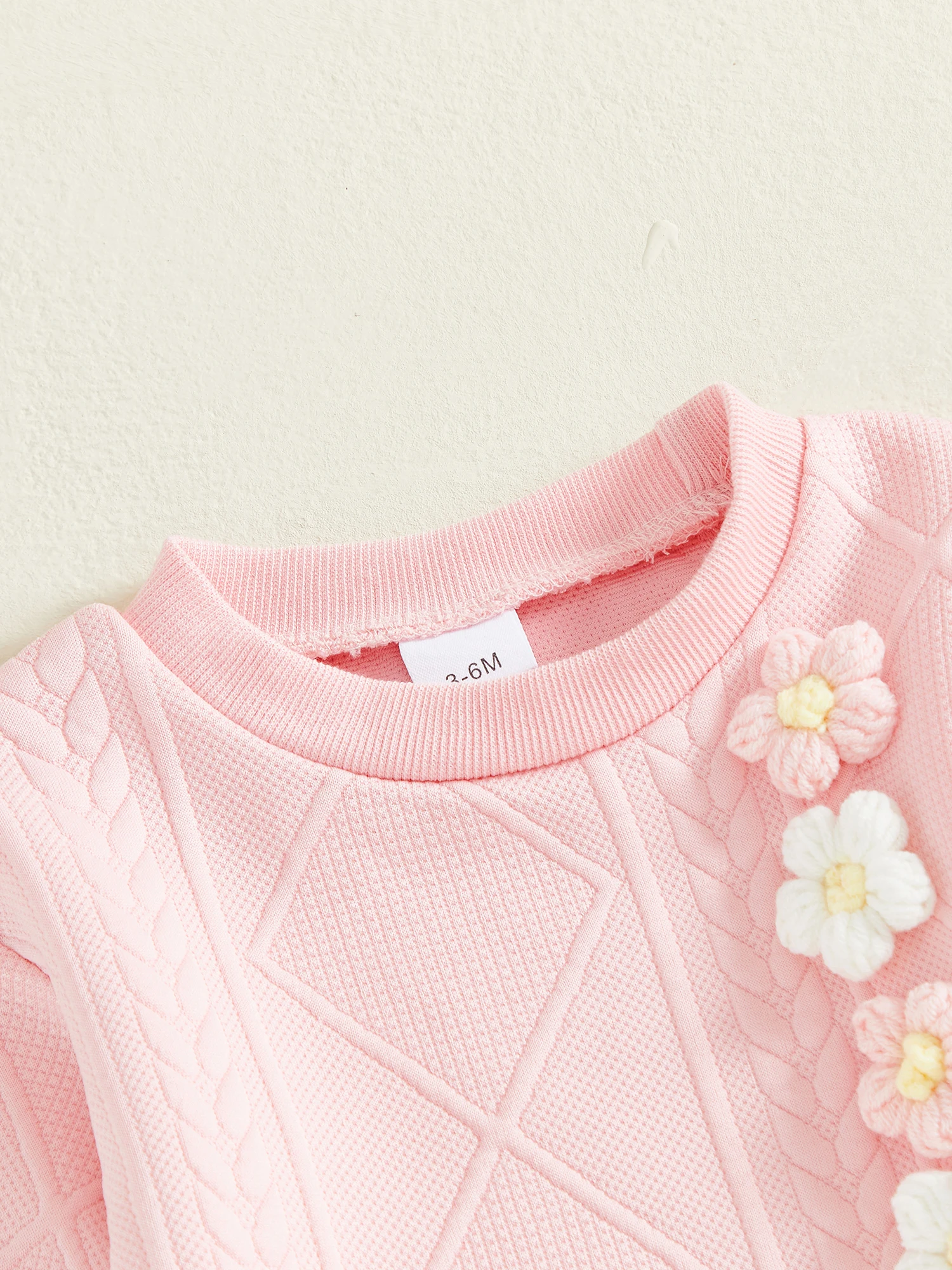 Conjunto de 2 piezas de trajes de otoño para niña de 0 a 3 años, Tops divididos con flores en 3D de manga larga y pantalones de cintura elástica, ropa para niños pequeños