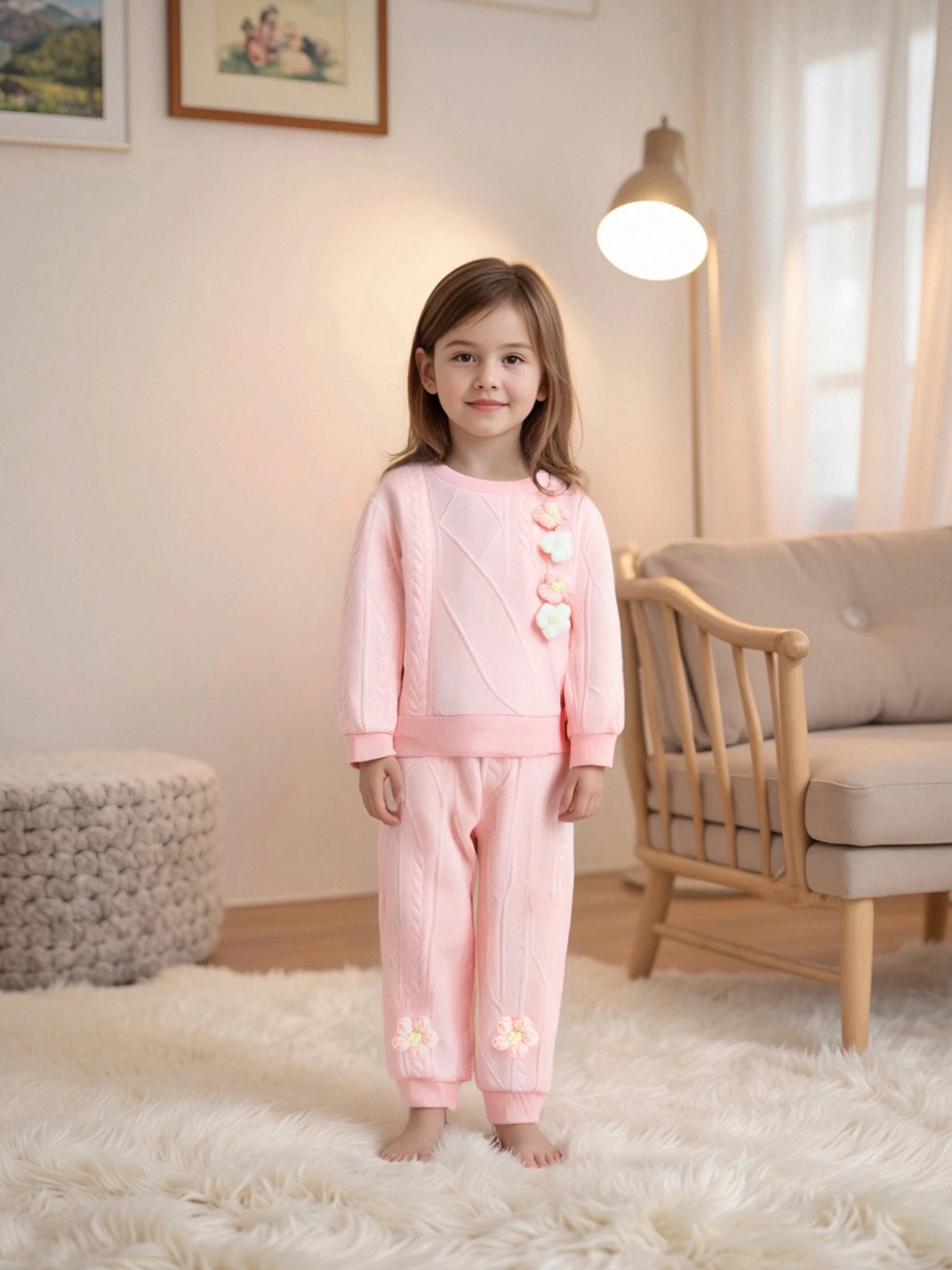 Conjunto de 2 piezas de ropa de otoño para niña, camisetas divididas con flores 3D de manga larga + pantalones, ropa para niños pequeños