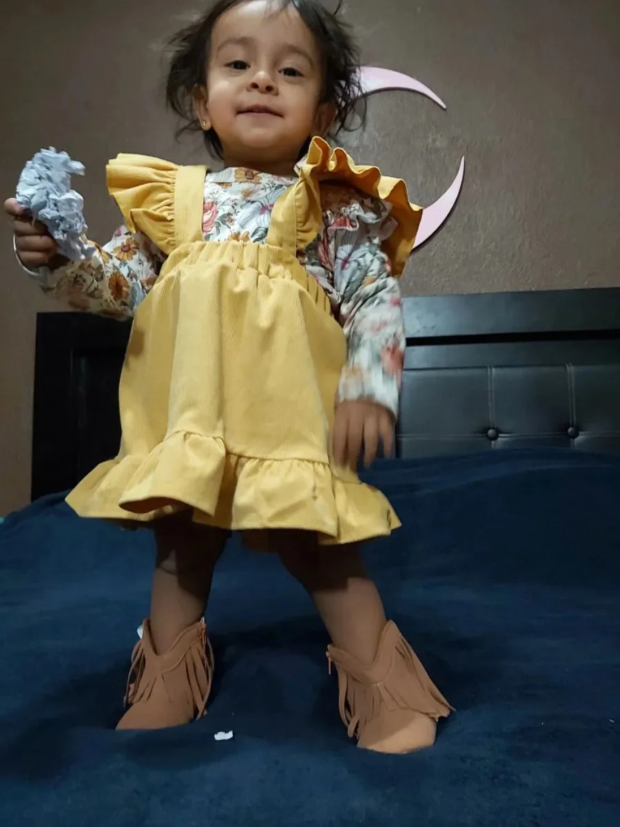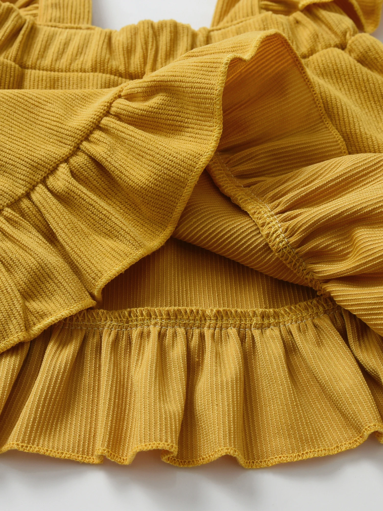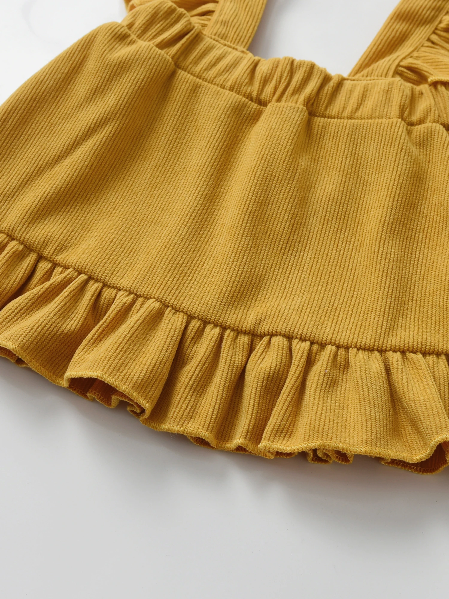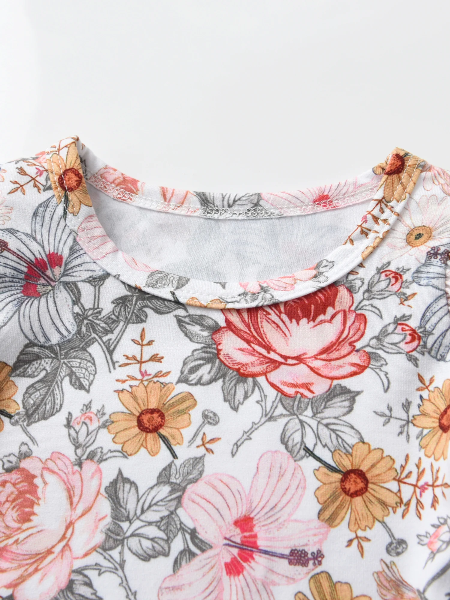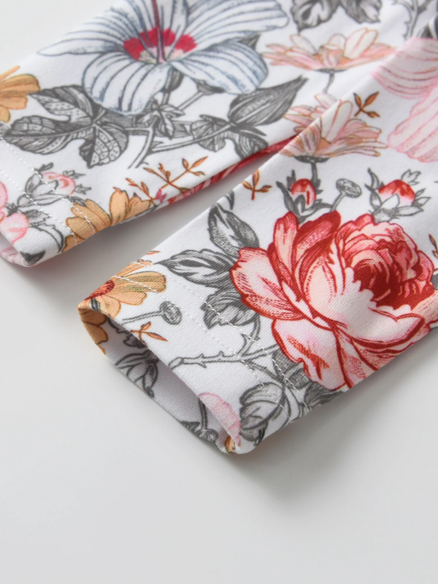 Comprar Conjunto de 2 uds de mono Floral de manga larga para niña recién nacida y vestido frontal con ribete de volantes, conjunto de ropa bonita