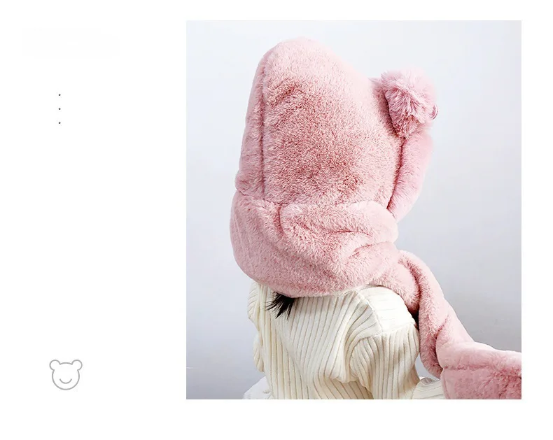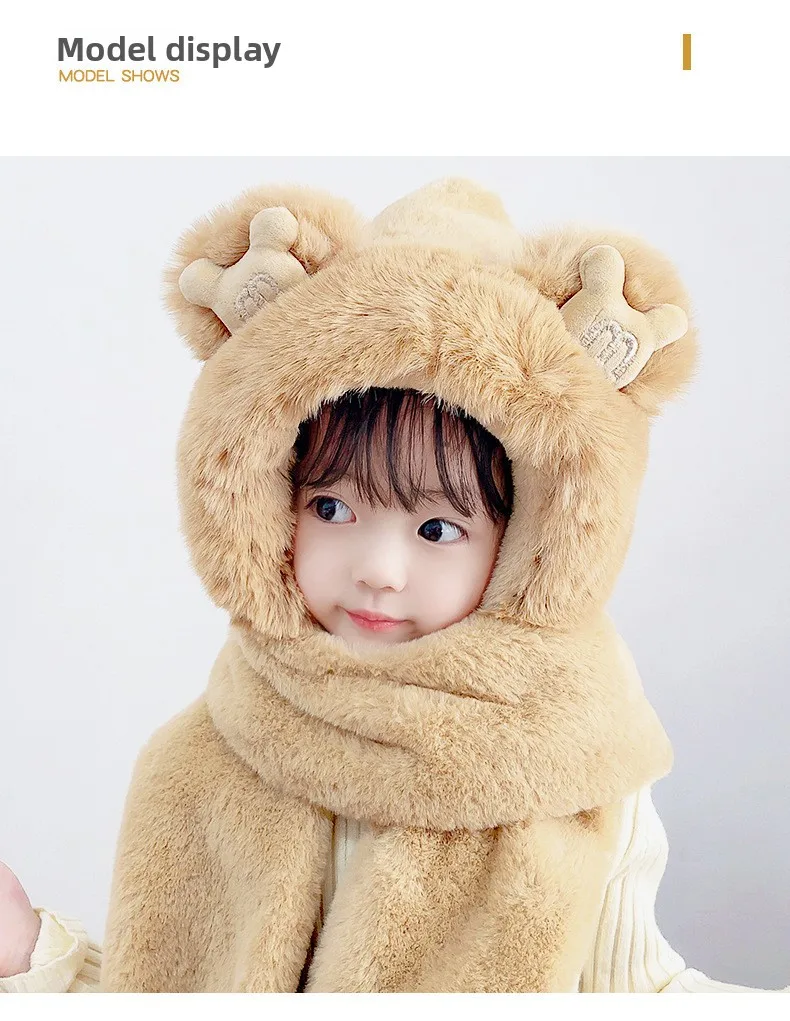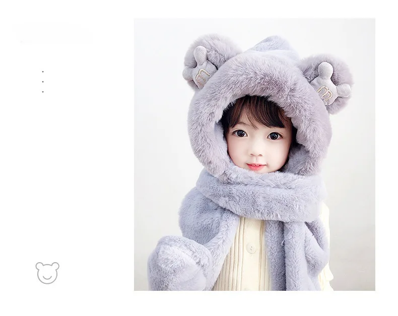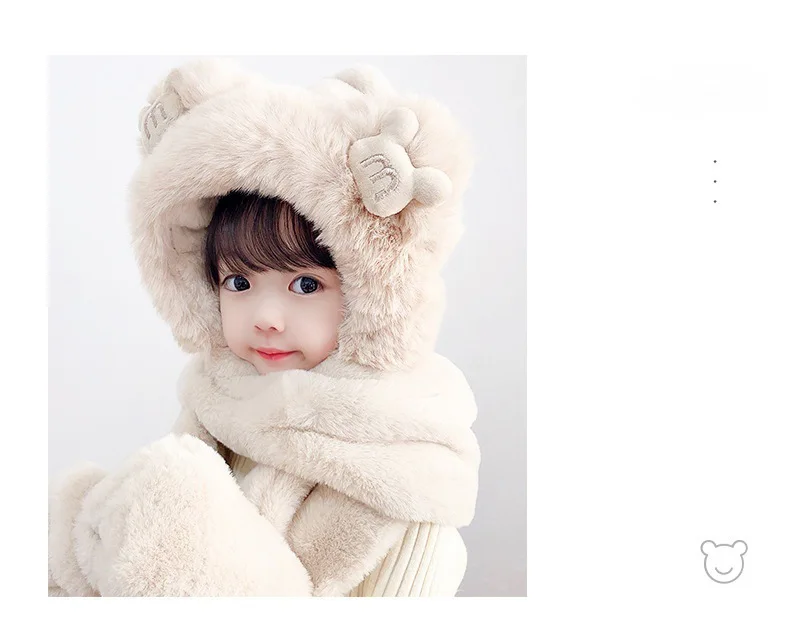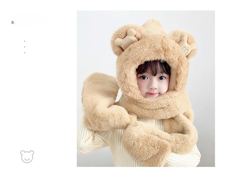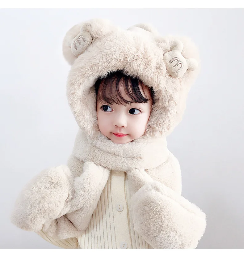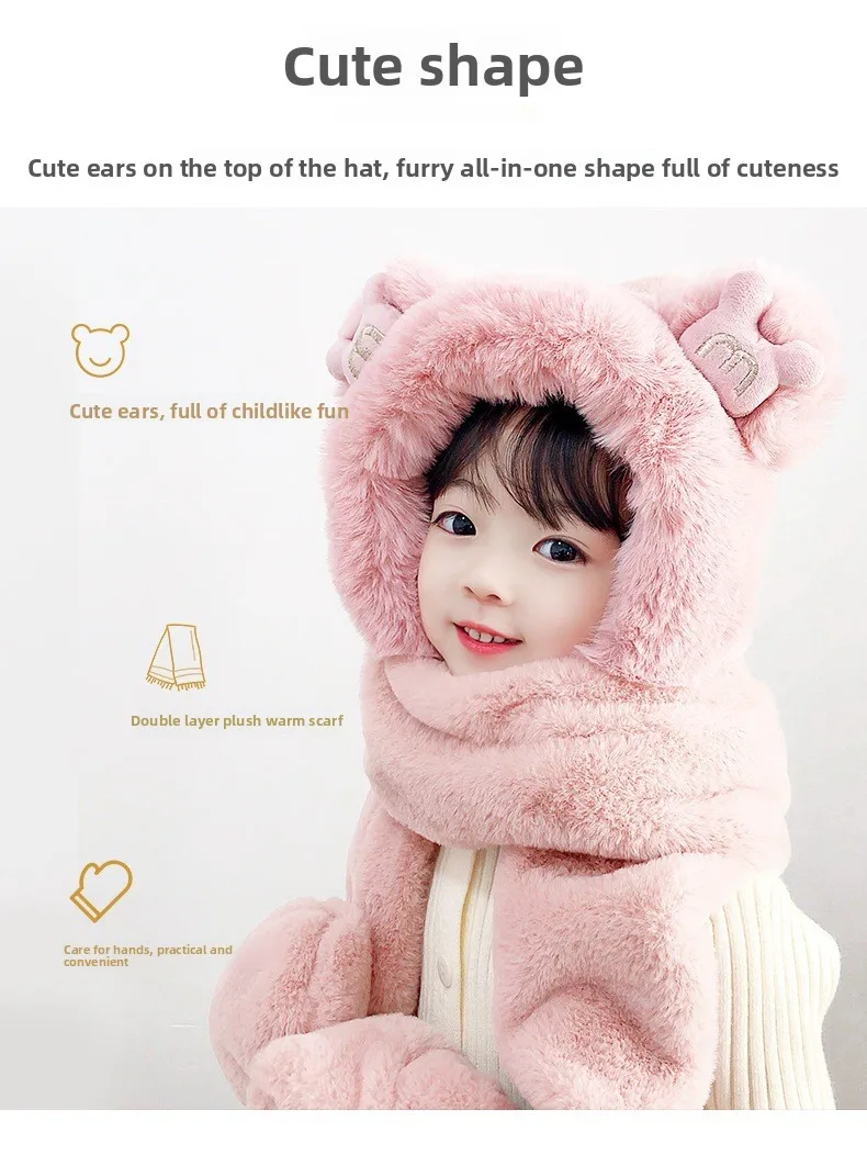 Conjunto 3 en 1 para niños de otoño e invierno: combinación de gorro, bufanda y guantes de felpa gruesos y cálidos, estilo de cubierta para la cabeza para niños, niñas y niños pequeños.