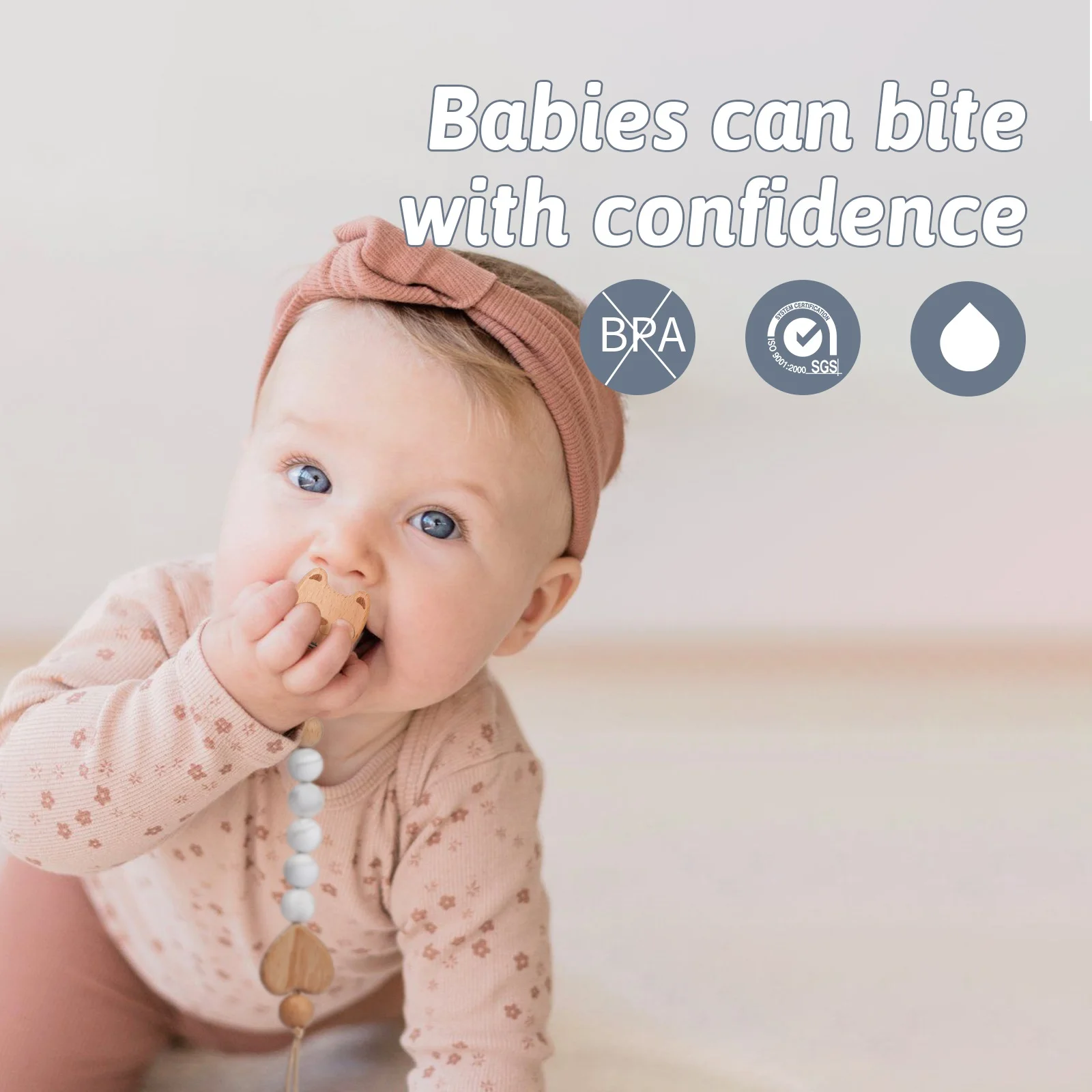 Comprar Conjunto de 5 unids/set de chupetes de madera con forma de zorro y oso, Clips de madera de haya Natural para chupete de bebé, accesorios para manualidades