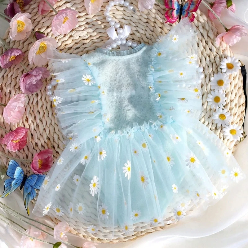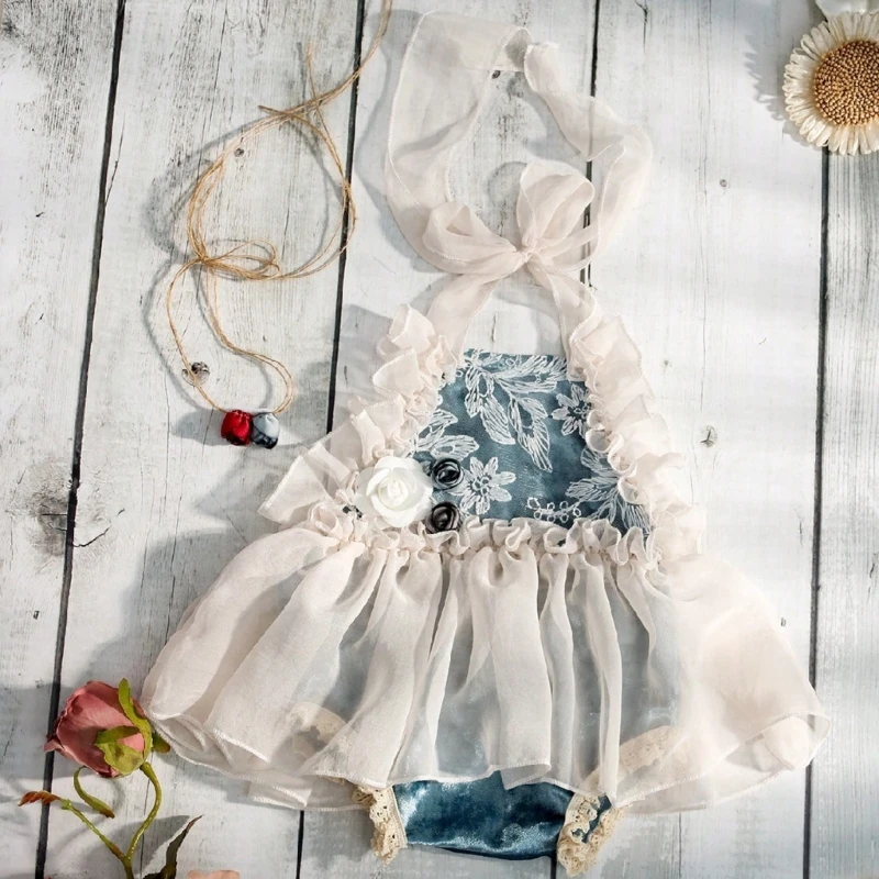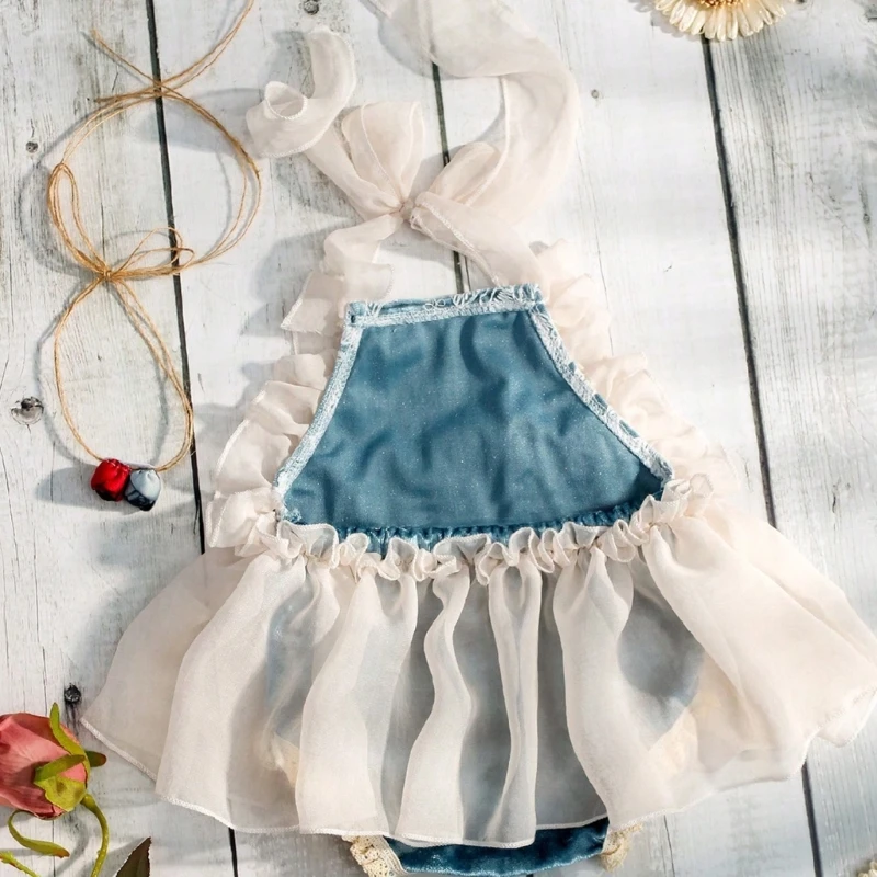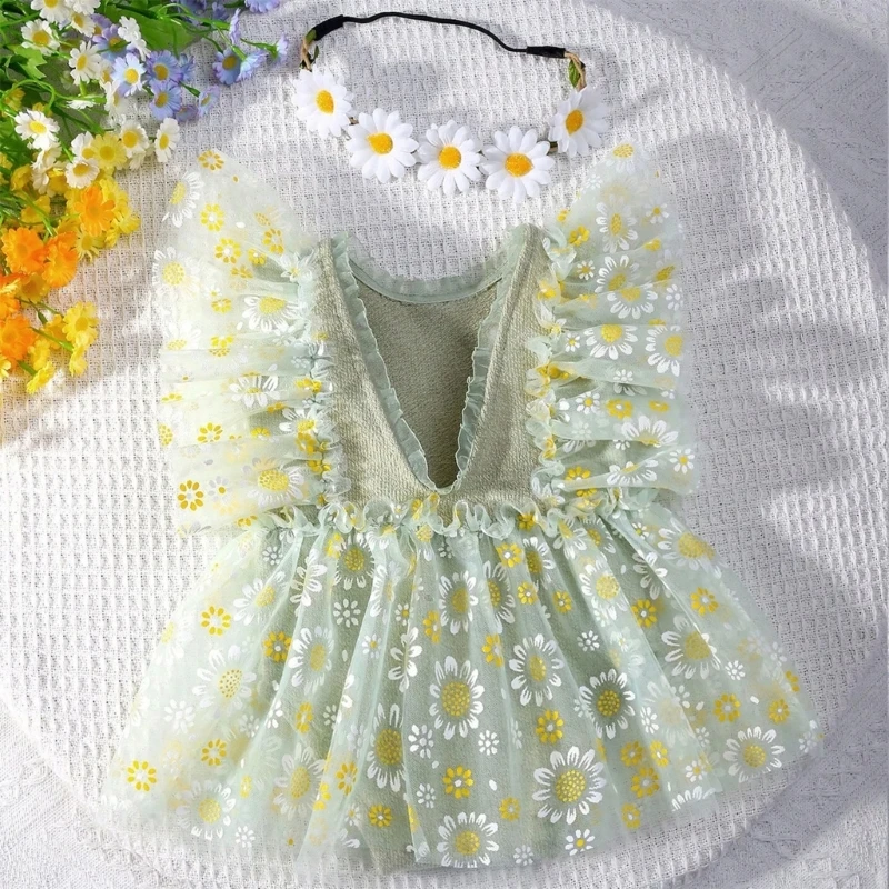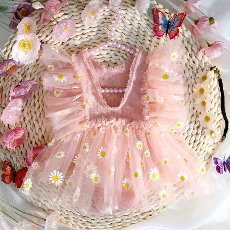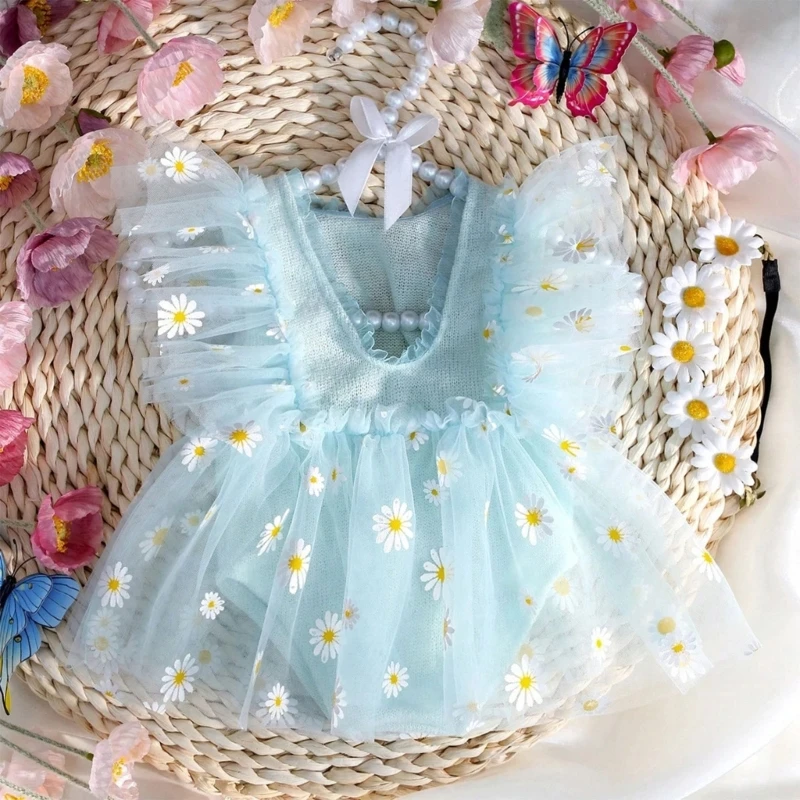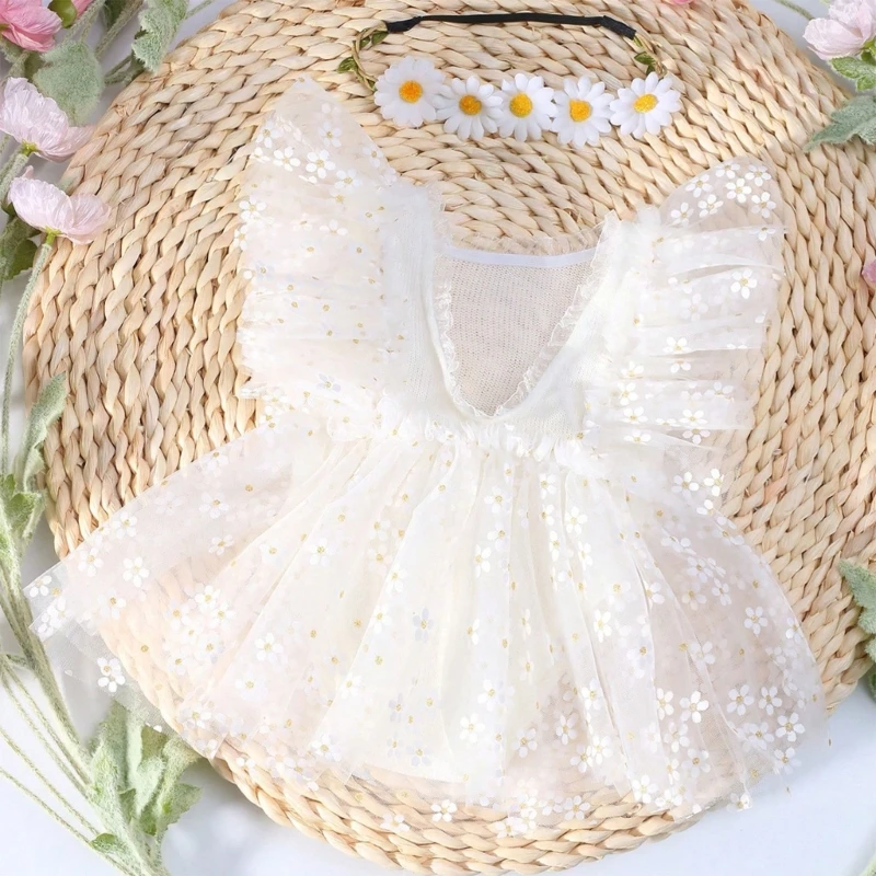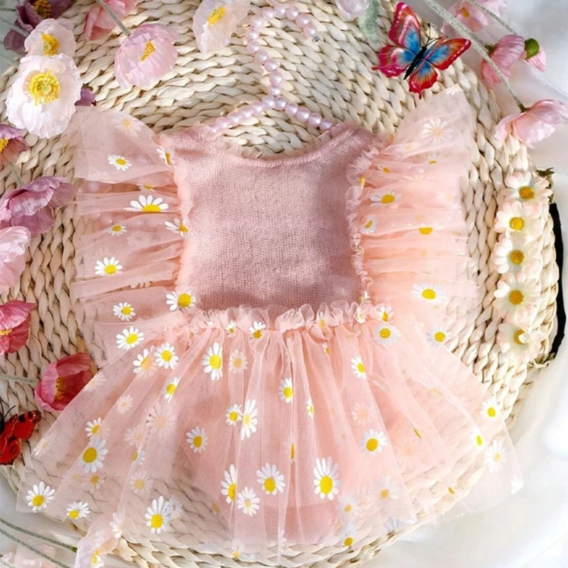 Conjunto de accesorios de fotografía para recién nacido, vestido de encaje Floral con diadema para sesión de fotos de bebé, bordado de margaritas y flores, 1 Juego