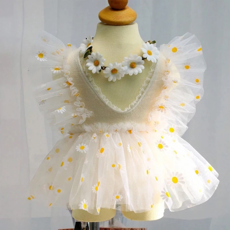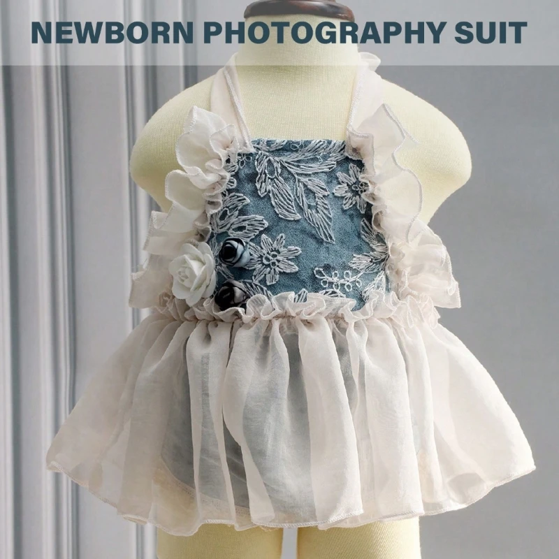 Comprar Conjunto de accesorios de fotografía para recién nacido, vestido de encaje Floral con diadema para sesión de fotos de bebé, bordado de margaritas y flores, 1 Juego